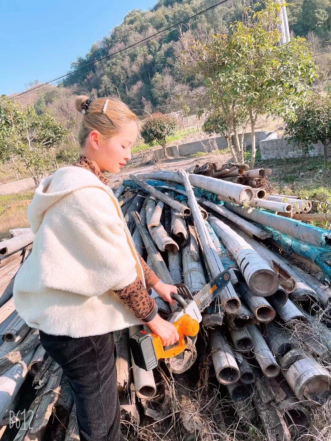 充电式电锯伐木锯家用小型12寸锂电电链锯手持户外链锯修枝电动锯