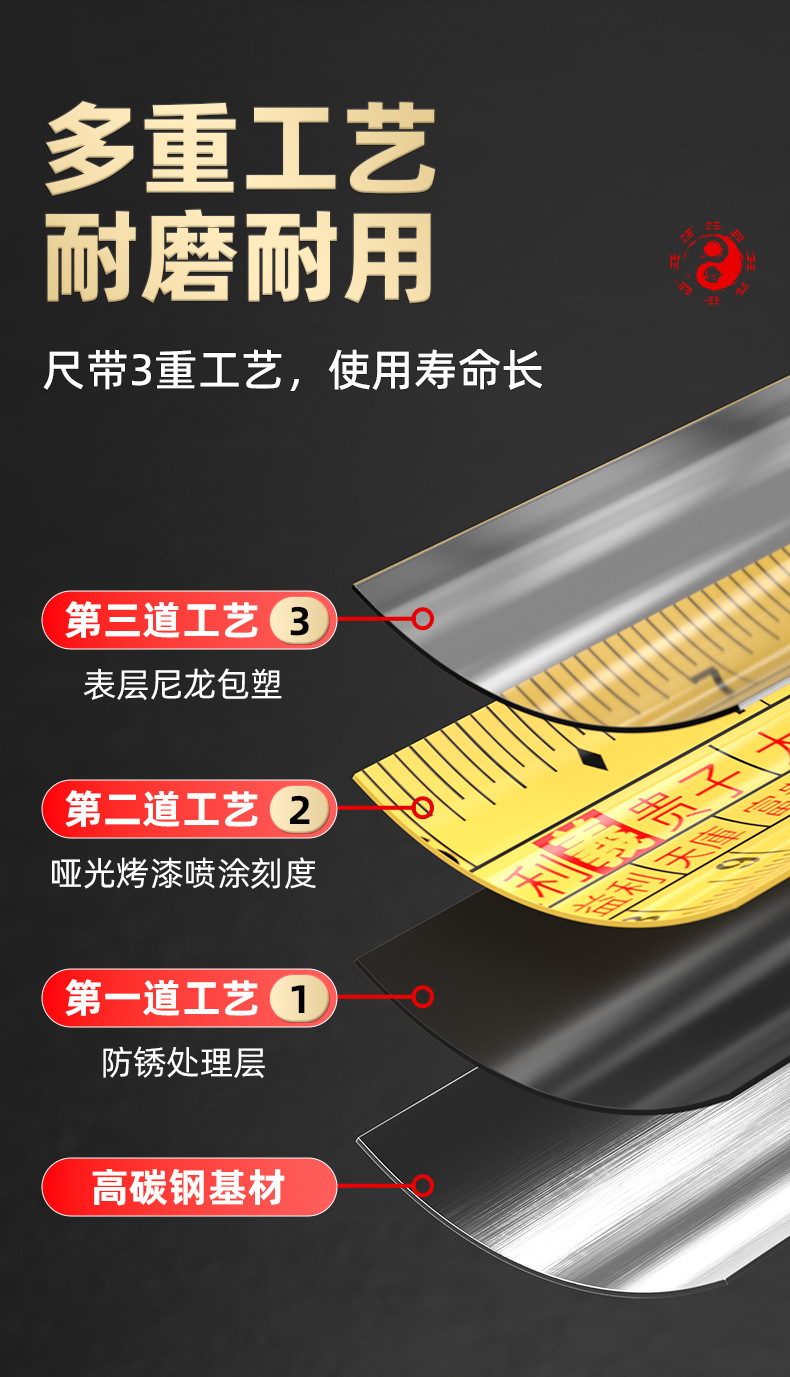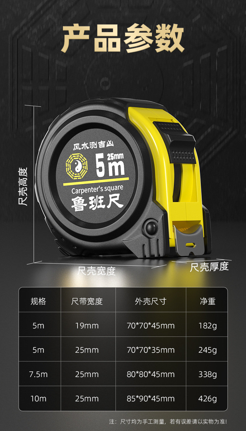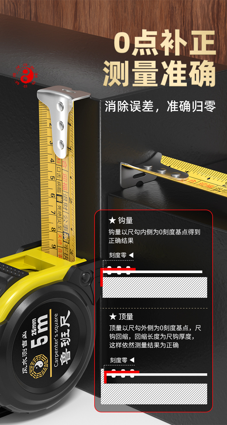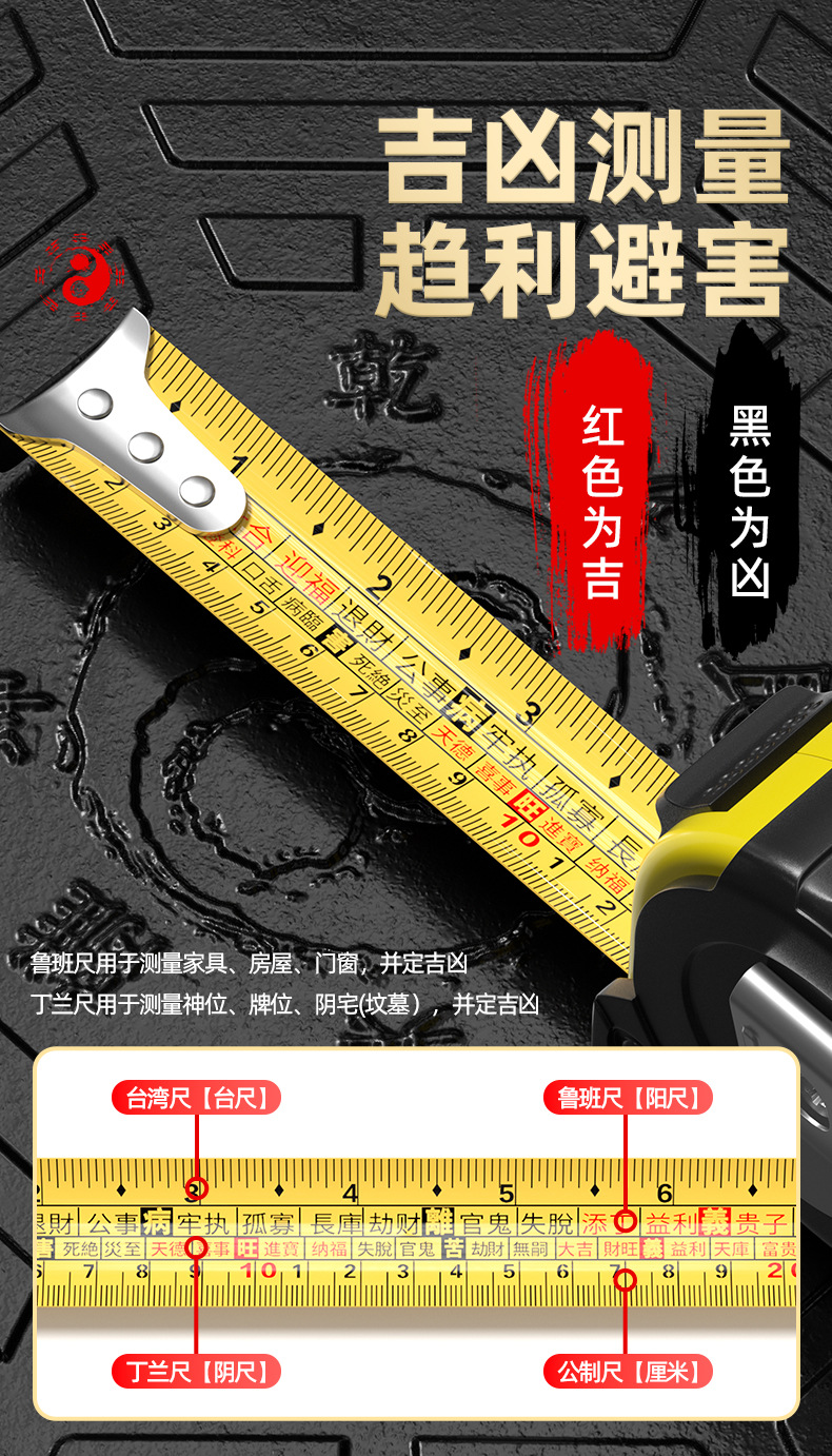 正宗鲁班尺风水尺卷尺高精度米尺10米台湾盒尺家用5米老式丁兰尺