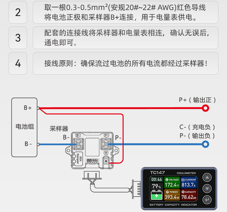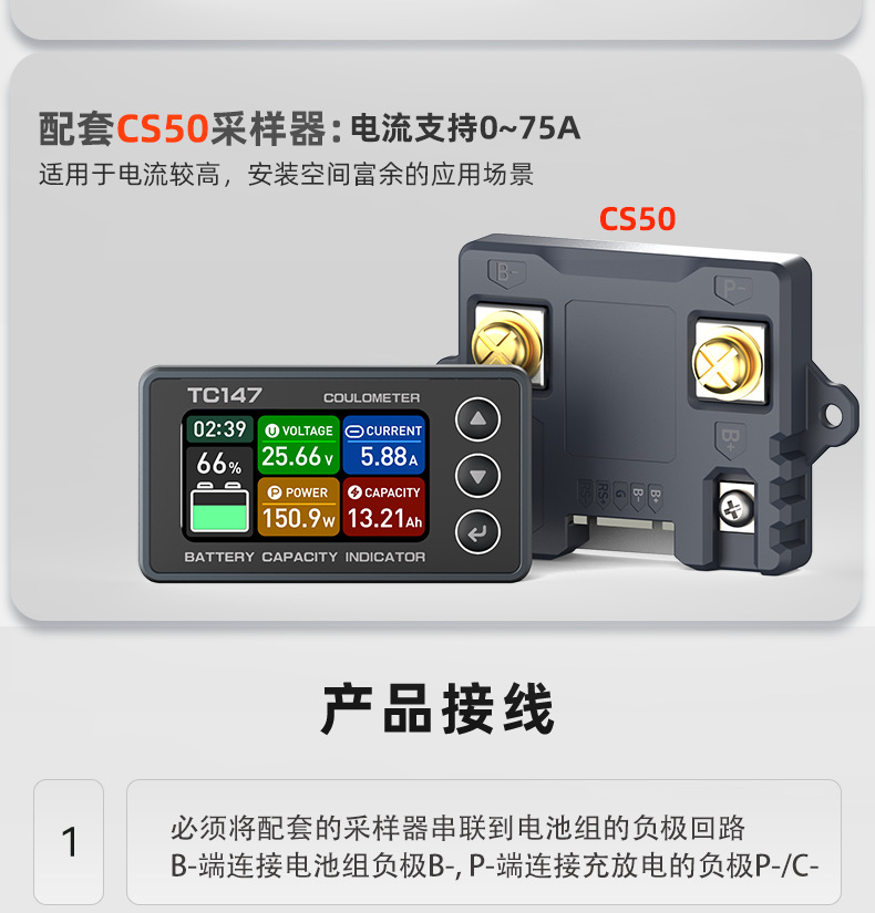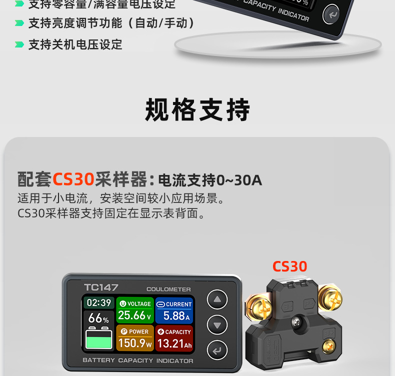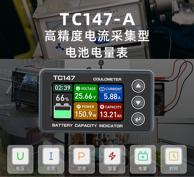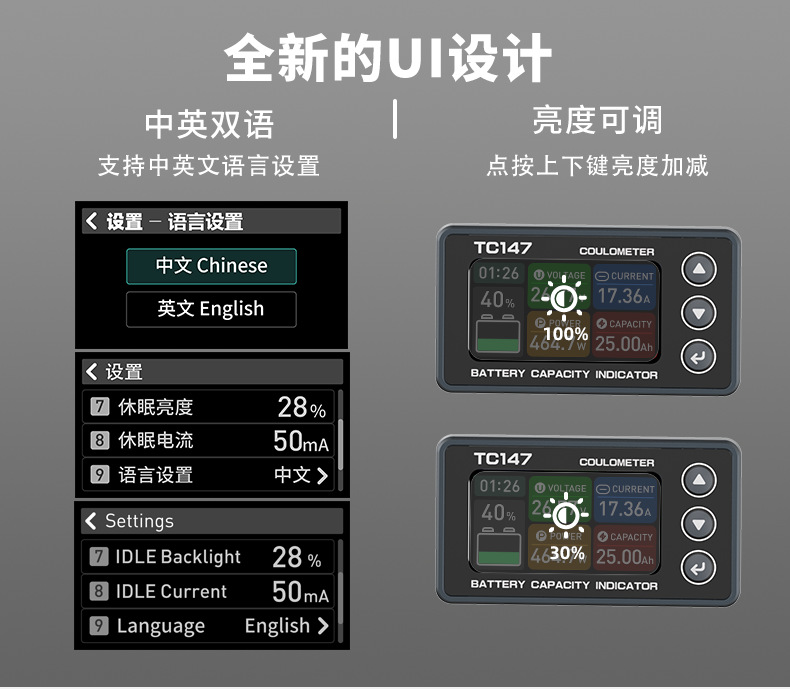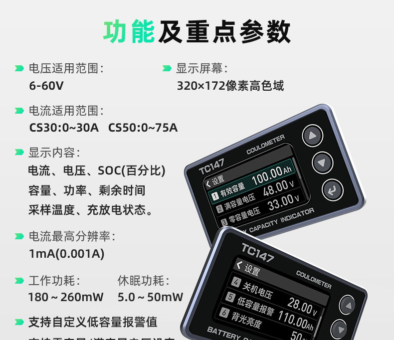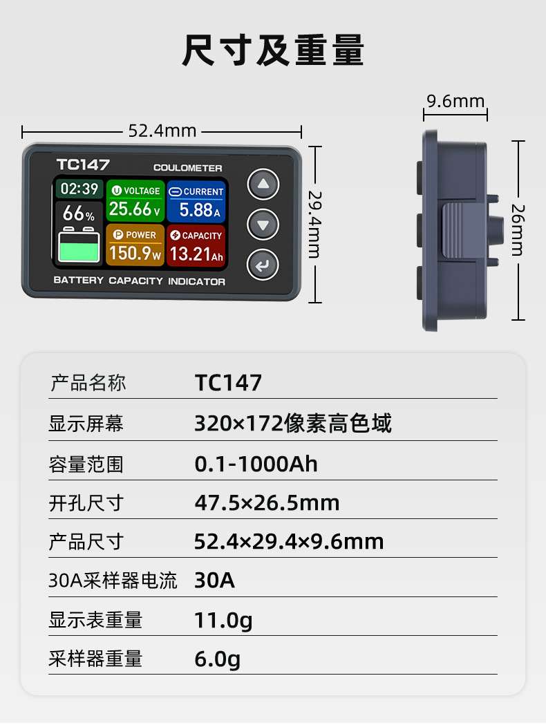TC147 高精度彩屏库仑计 电池电压电流表 锂电池电量显示表