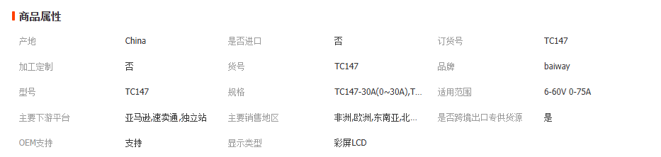 TC147 高精度彩屏库仑计 电池电压电流表 锂电池电量显示表 1台