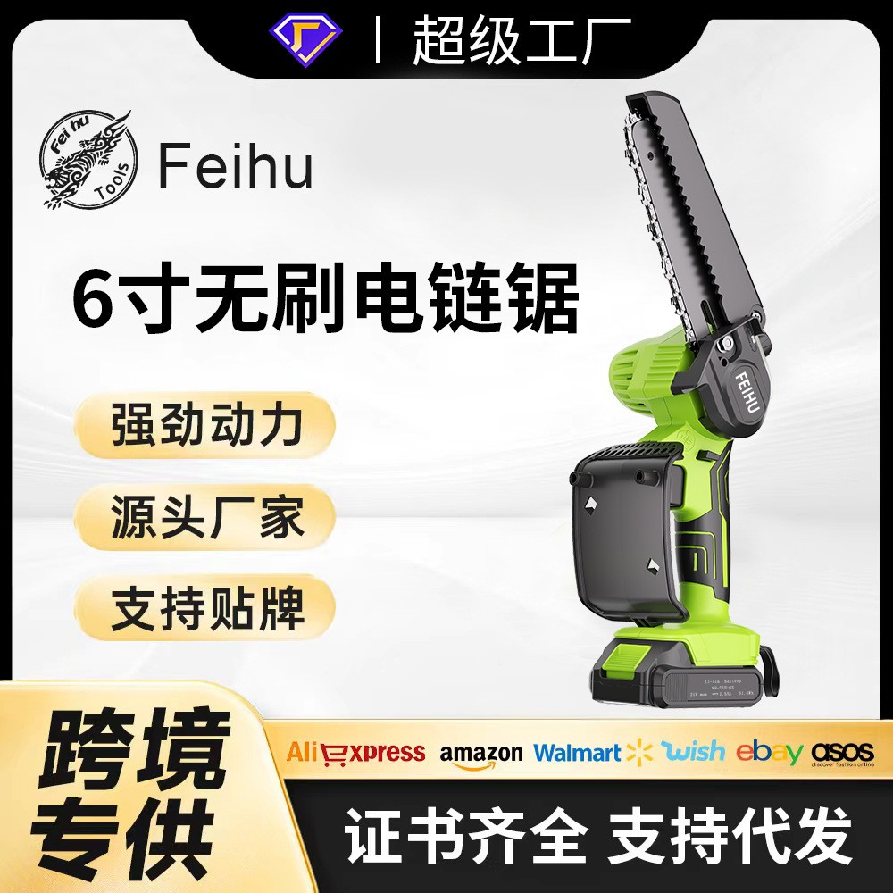 飞虎21V带油壶手持迷你锯跨境外贸6寸无刷园林修枝锯大功率锂电锯
