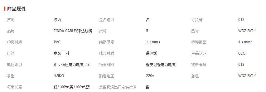 津达线缆 厂家直供批发WDZ-BYJ 4线缆 低烟无卤线缆 3卷