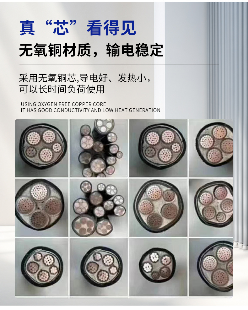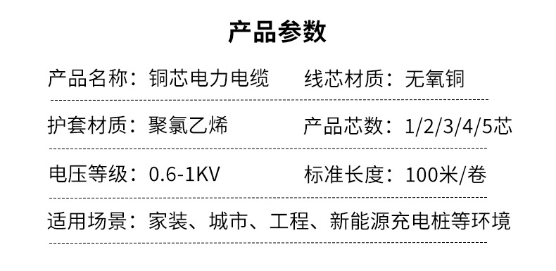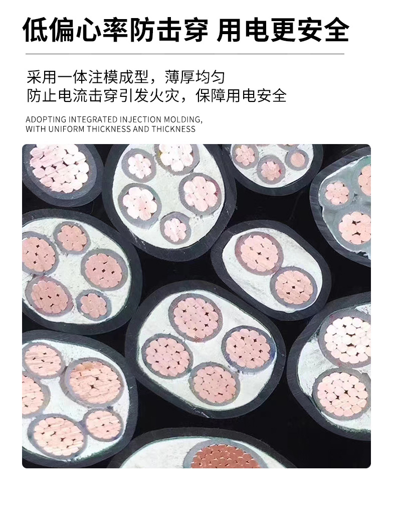 国标铜芯电力电缆 2/3/5芯16-95平方YJV阻燃工程电力铜芯电缆线 10米