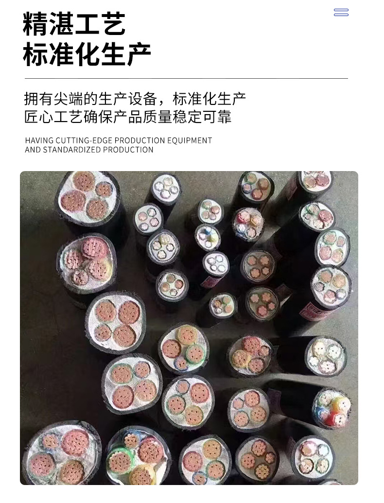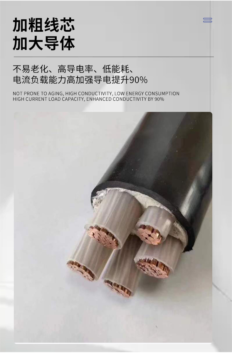 国标铜芯电力电缆 2/3/5芯16-95平方YJV阻燃工程电力铜芯电缆线