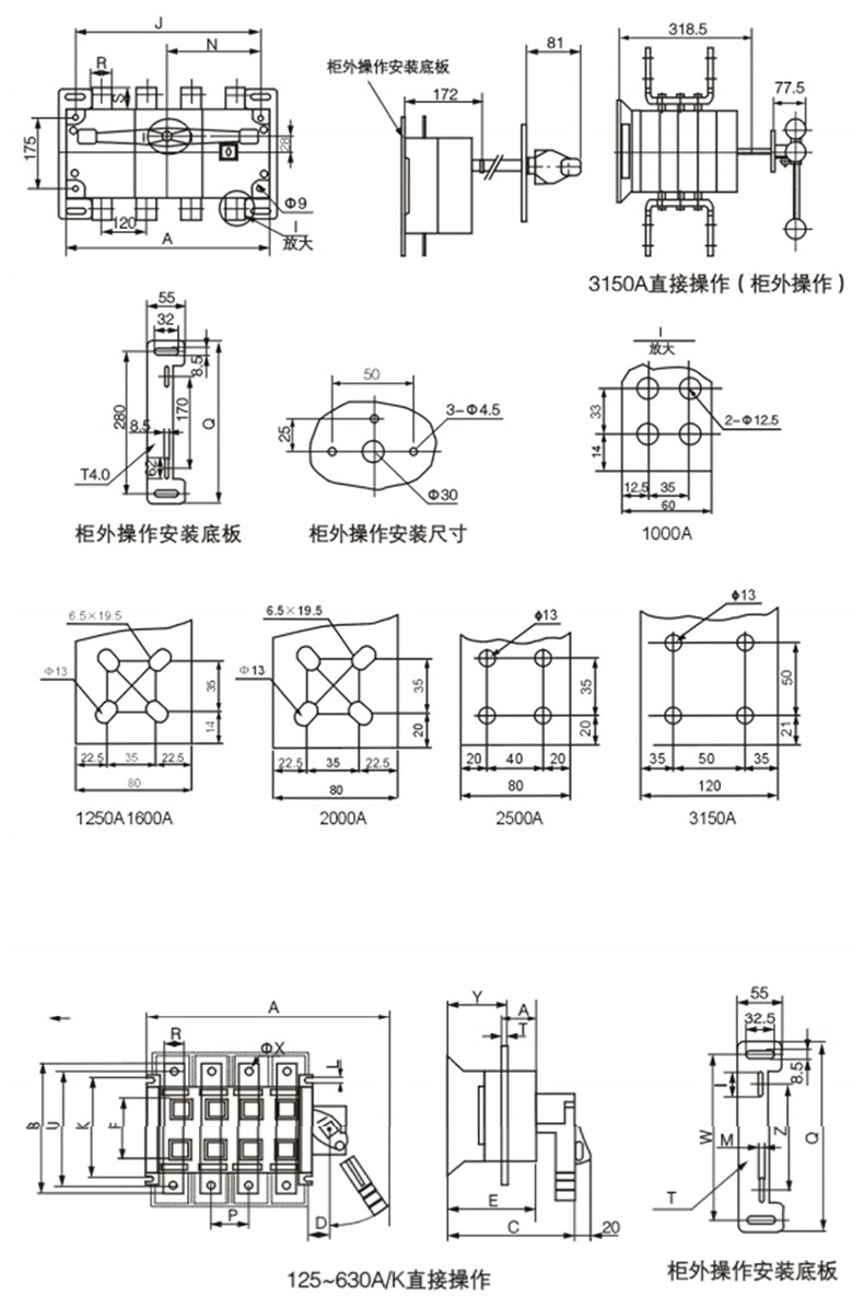 HGL-250/3隔离开关 负荷隔离开关100/4 刀开关 柜内柜外操作