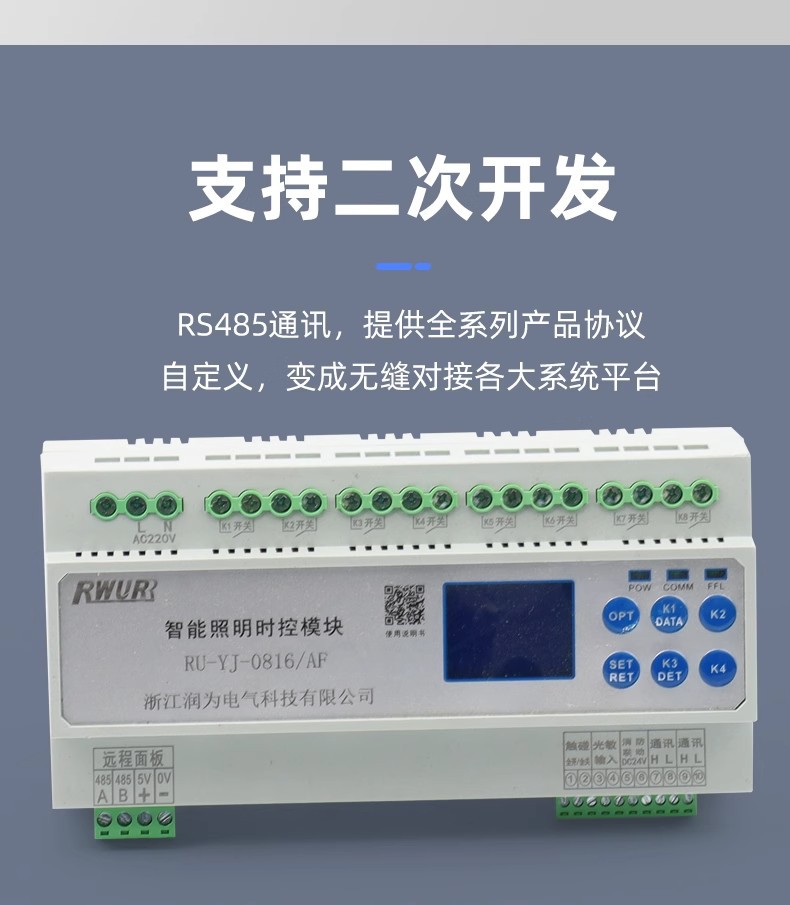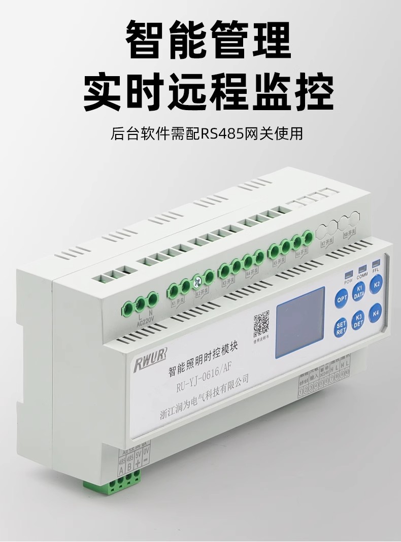 RU智能照明时控模块PC阻燃材质4/6/8/12路16A光控模块回路控制器