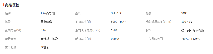 JDW晶导微 SSL510C SMC 5A 低压降LOW VF 低正向肖特基二极管