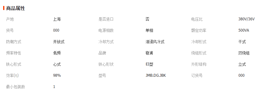 输出电压:220V 120V 110V 48V 36V 24V 12V 6V (按用户要求)