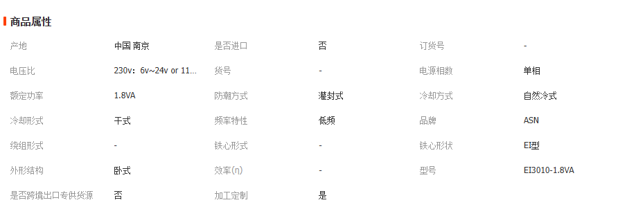 表示这款变压器规格是EF20×6.1的,输入电压AC 115V,输出功率0.35VA,输出负载电压AC 9V,为单组输出。