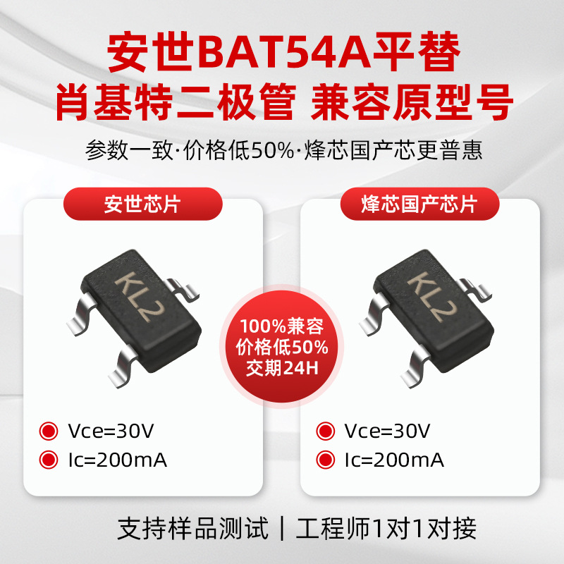 安世替代BAT54A肖特基二极管30V 0.2A SOT-23贴片二极管品牌平替 3000颗