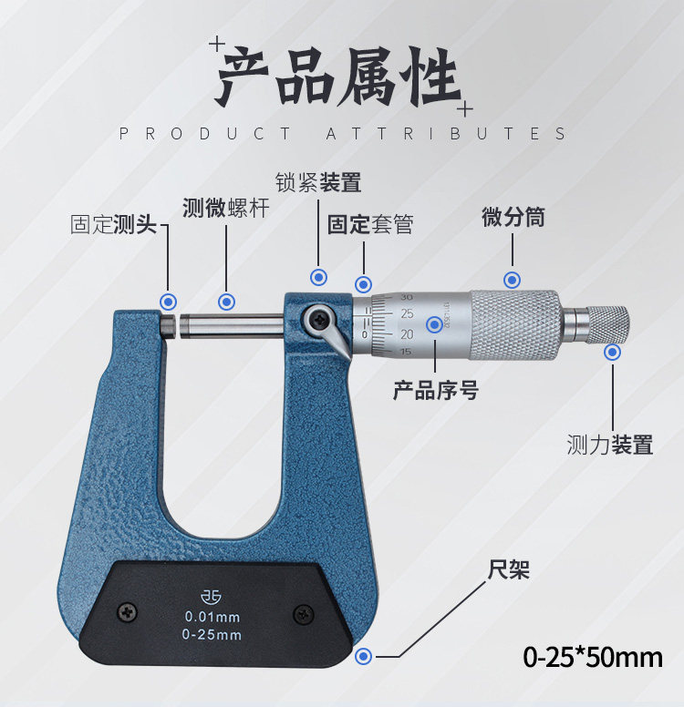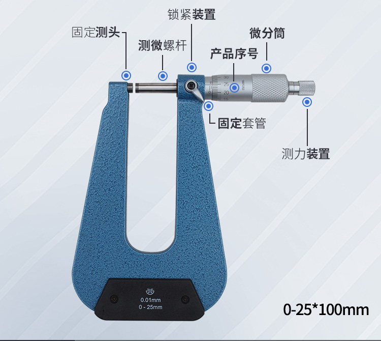 青海青量深弓架千分尺 板厚千分尺 异型外径千分尺 0-25*50 100mm 1把