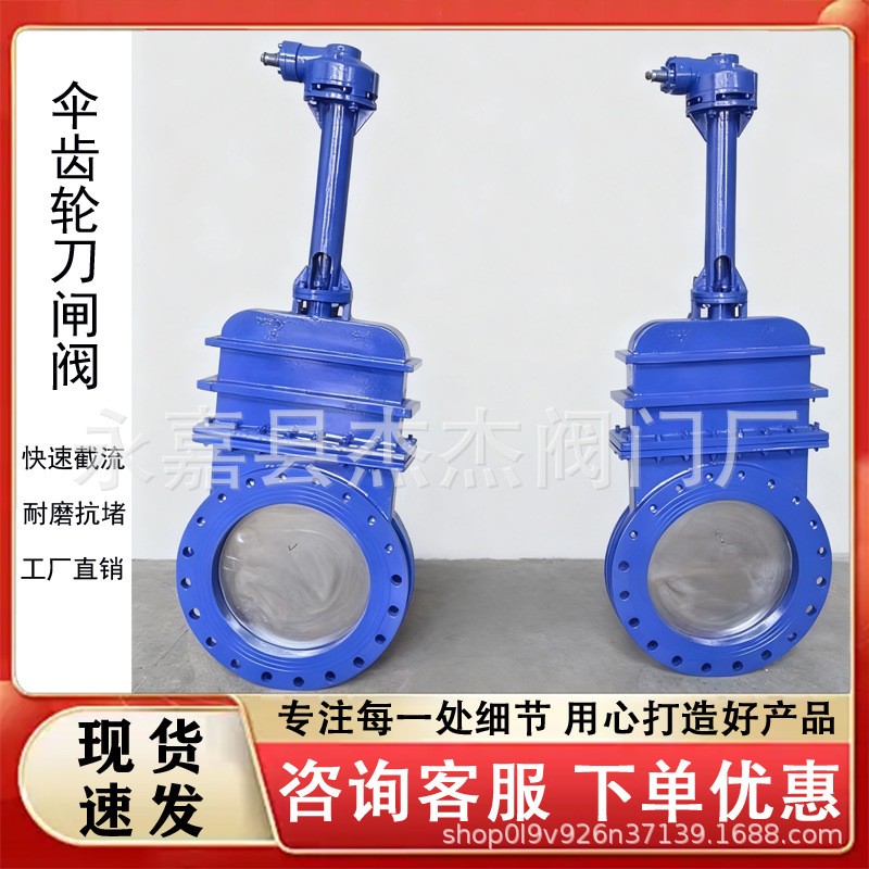 PZ543-10C碳钢伞齿轮圆形耐磨刀闸阀DN300插板阀刀型闸阀