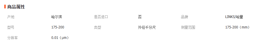 links哈量外径千分尺175-200(0.01)现货规格齐全,定做非标量具