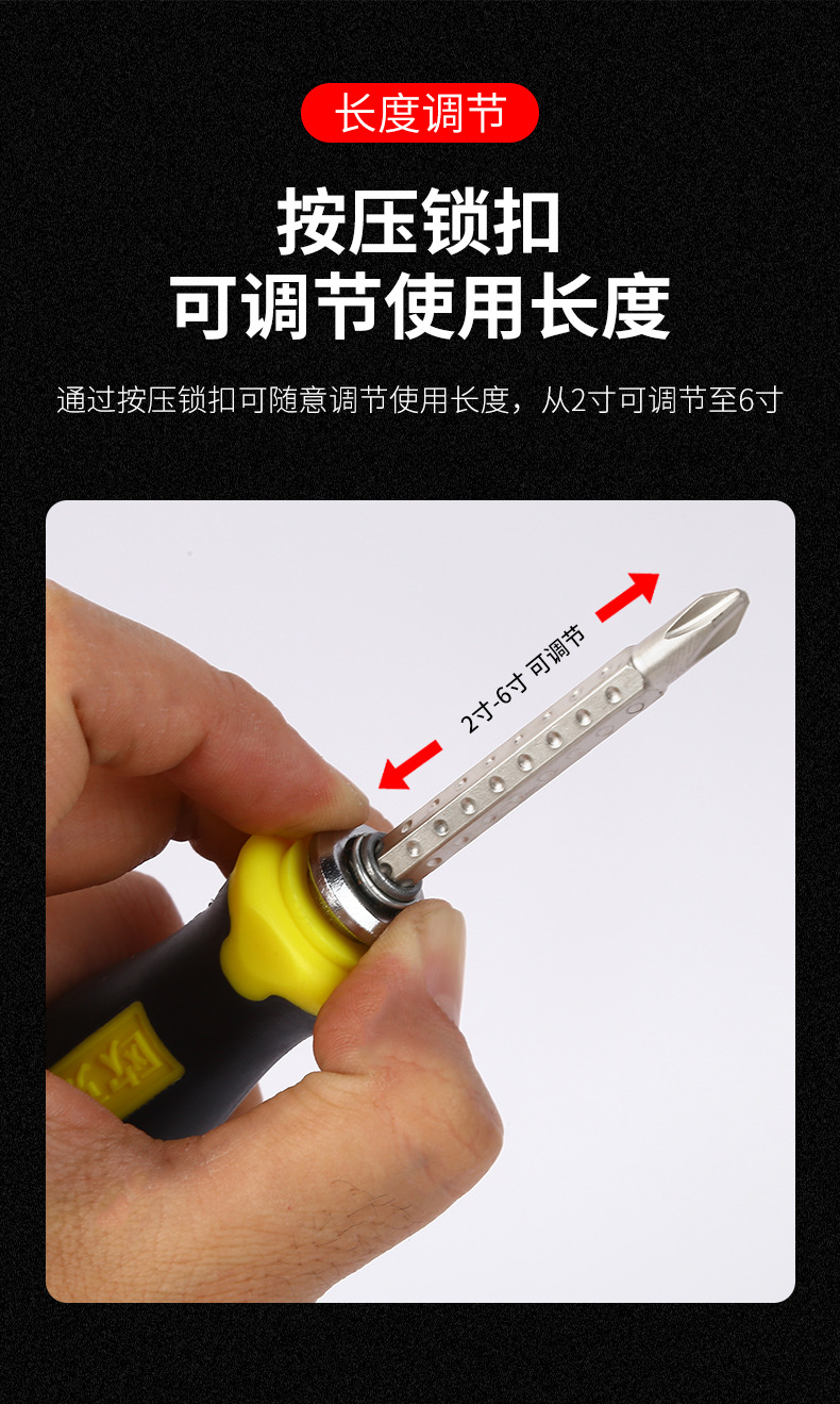 厂家批发螺丝刀套装两用磁性十字一字螺丝刀改锥伸缩螺丝刀四用
