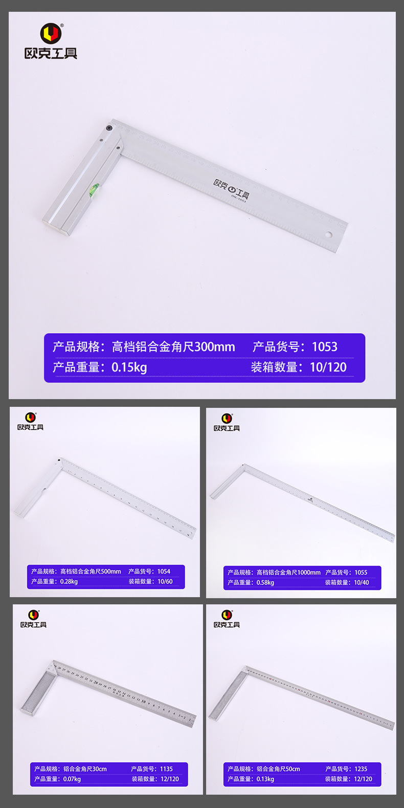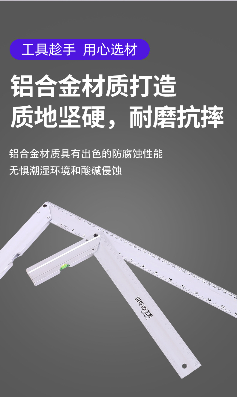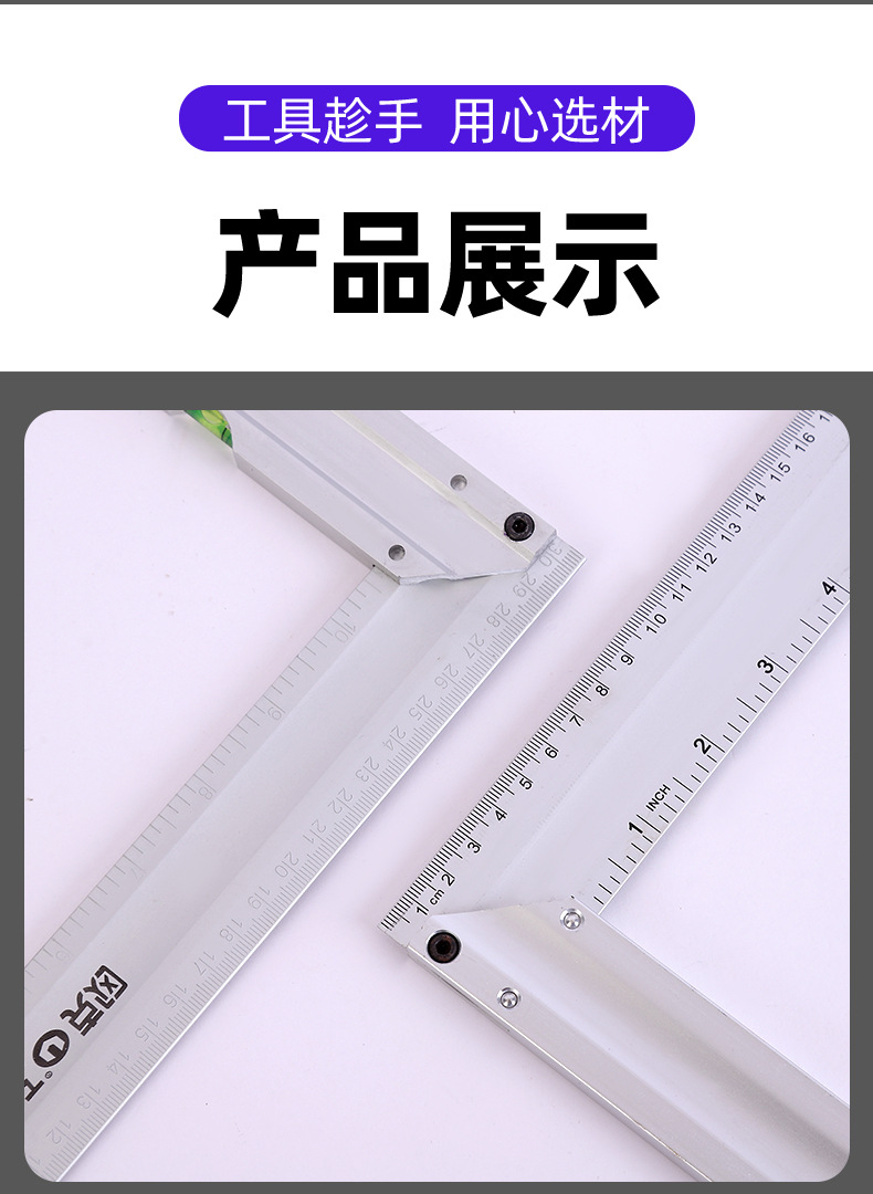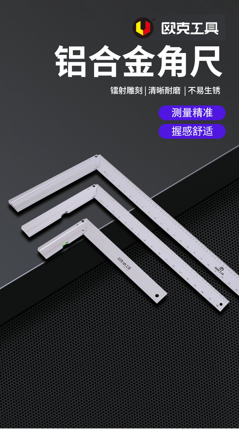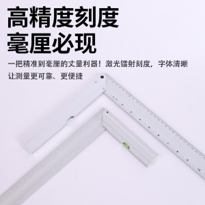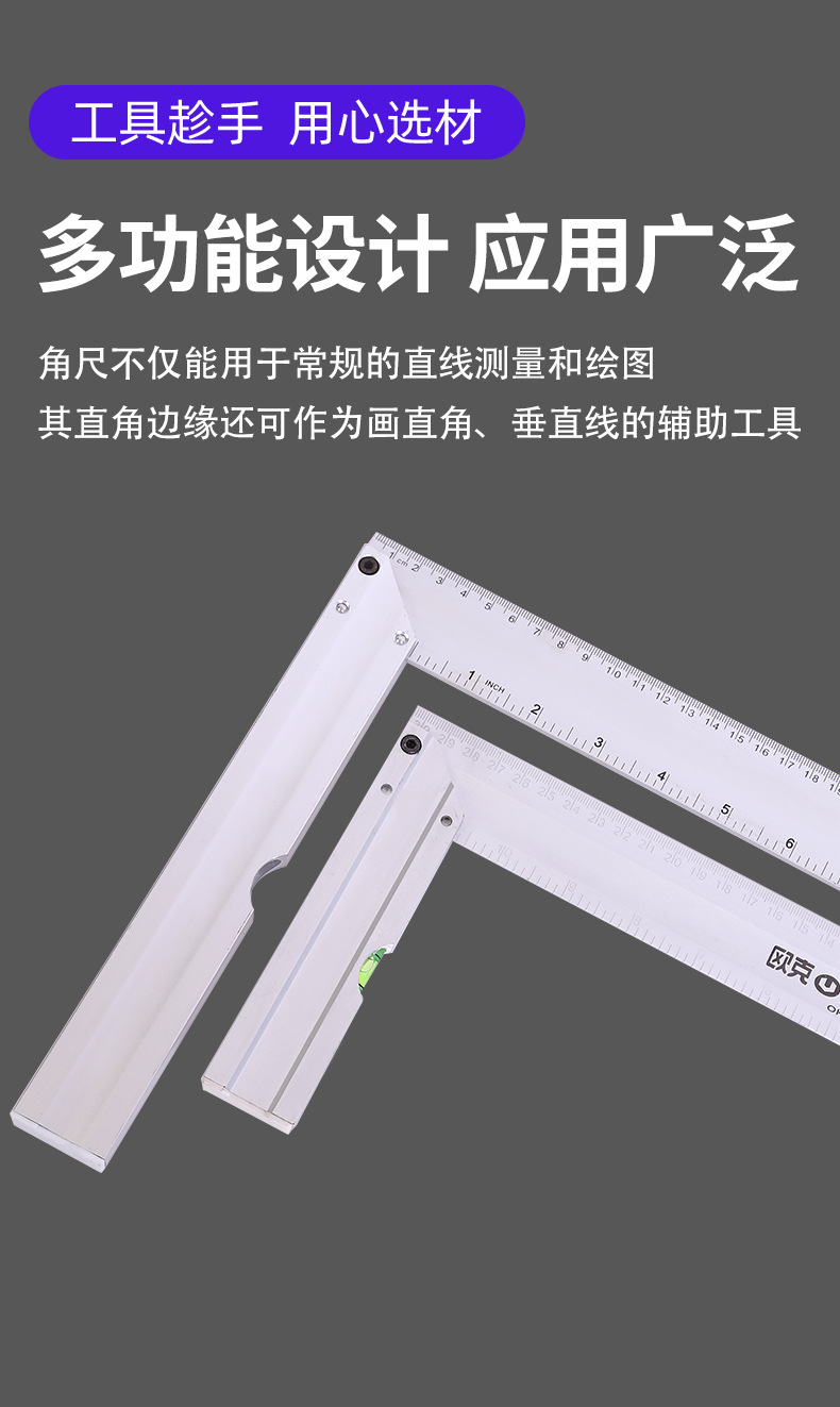 欧克铝合金直角尺90度加厚木工尺带水平泡钢角尺画线工具拐尺