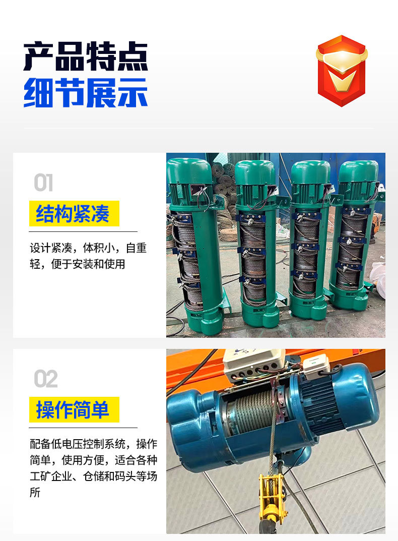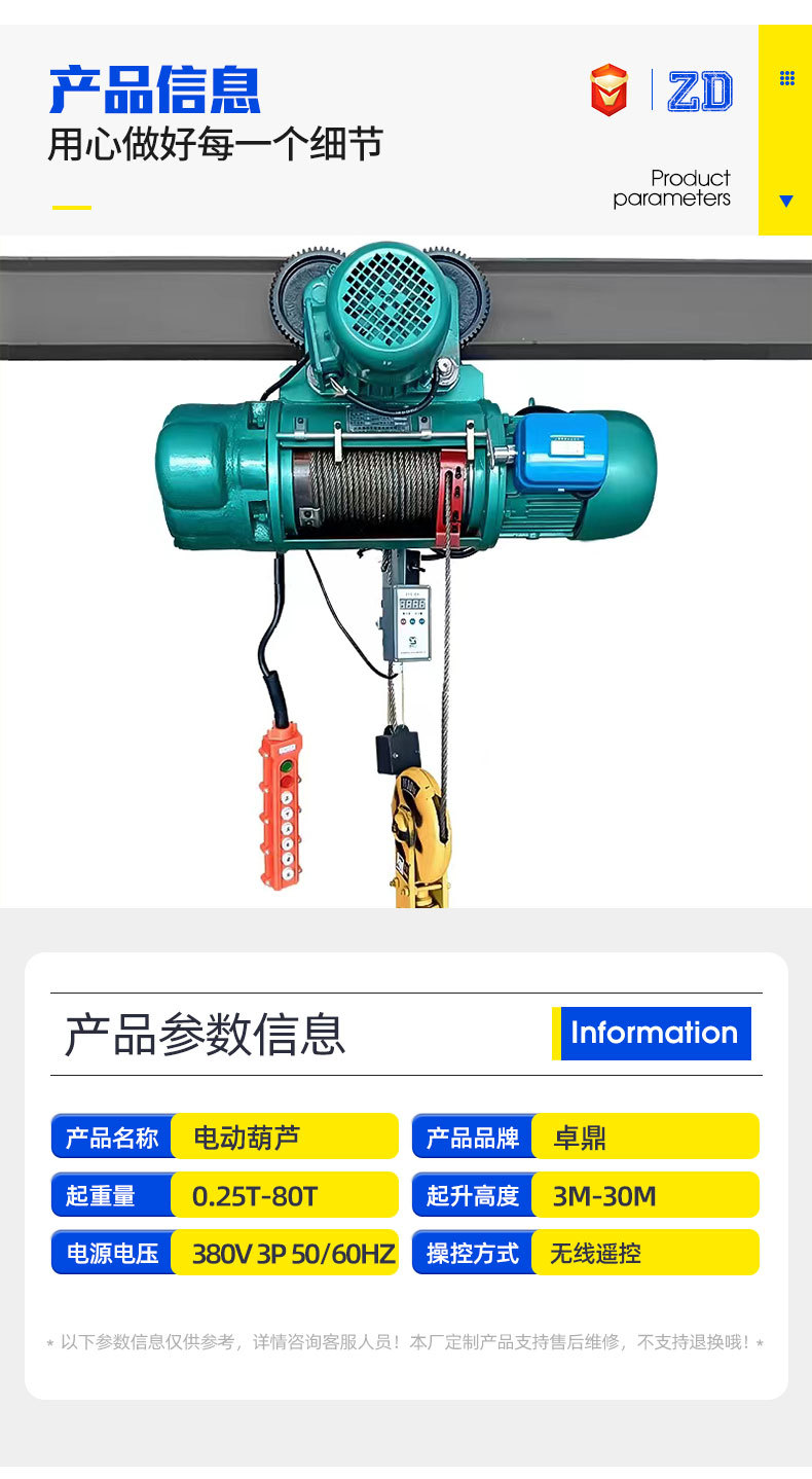 钢丝绳电动葫芦源头工厂 车间挂钩吊运货物5吨10t钢丝绳电动葫芦