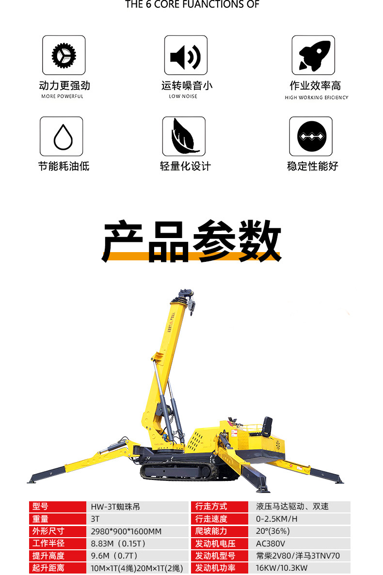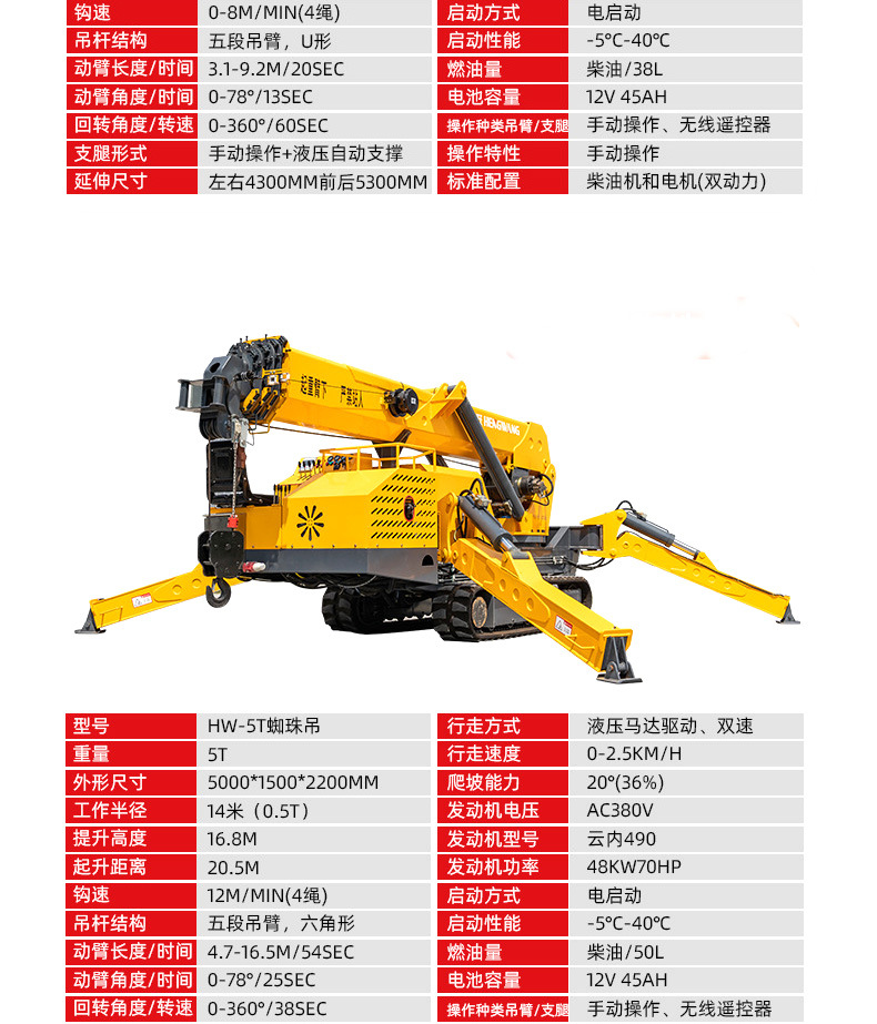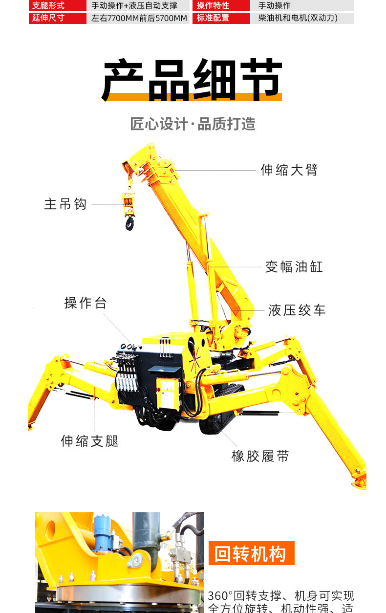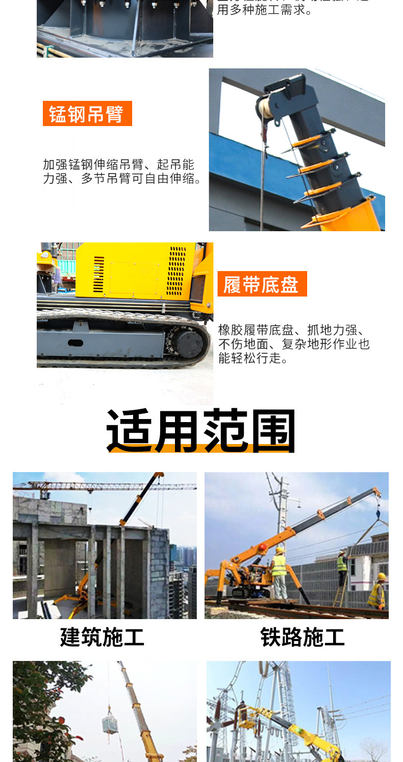 履带蜘蛛吊车伸缩臂桅杆式起重机厂房室内3-8吨小型折叠起重机