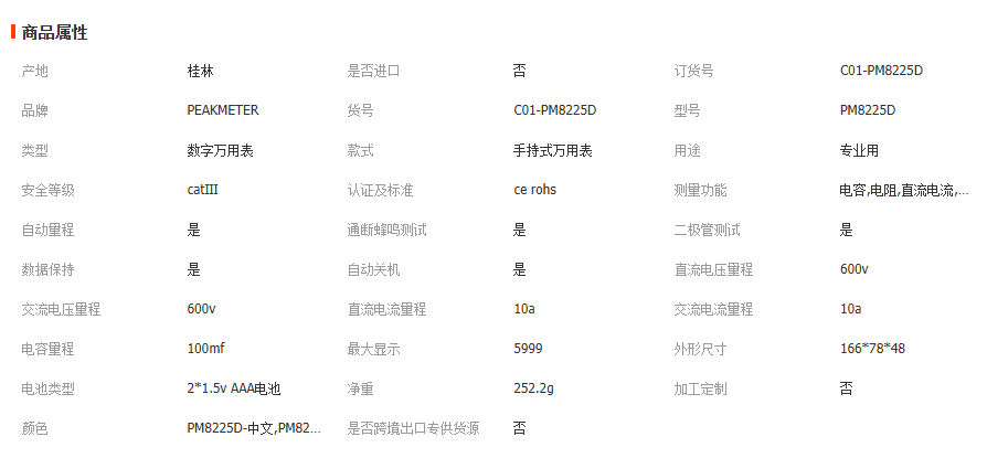 华谊PM8225D数字万用表半自动家用电工维修检测万能表高精度检测 1台