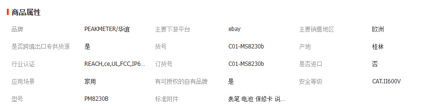 厂家直销PEAKMETER华谊PM8230B数显万用表手持式家用电工万能表 1台