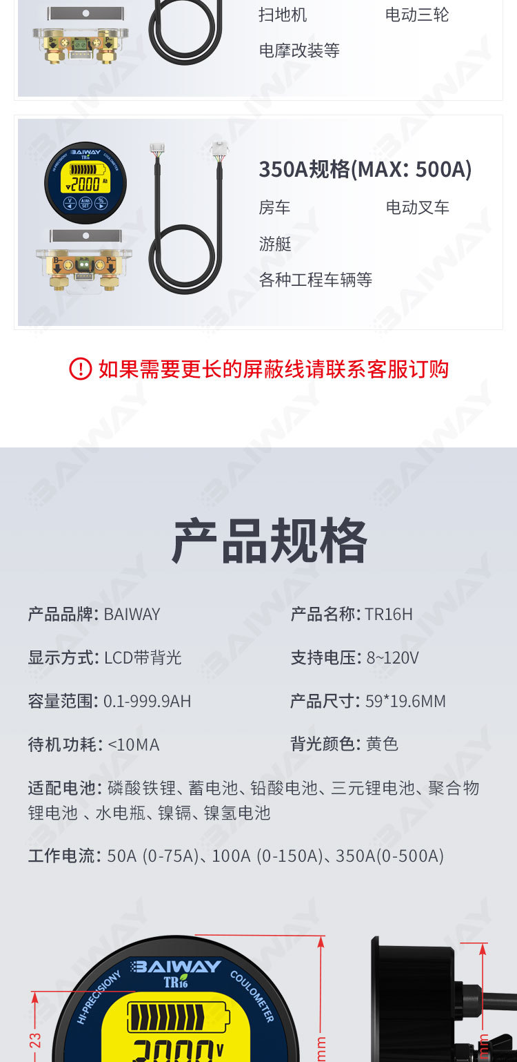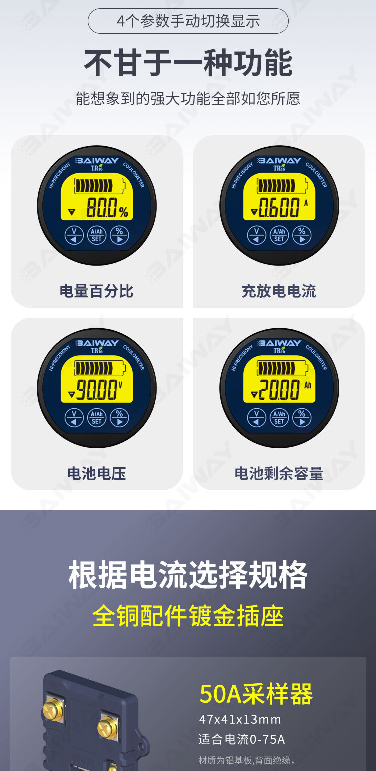 ##TR16H款 游艇房车电池电量显示表 电池电量监视器 换电改装电量