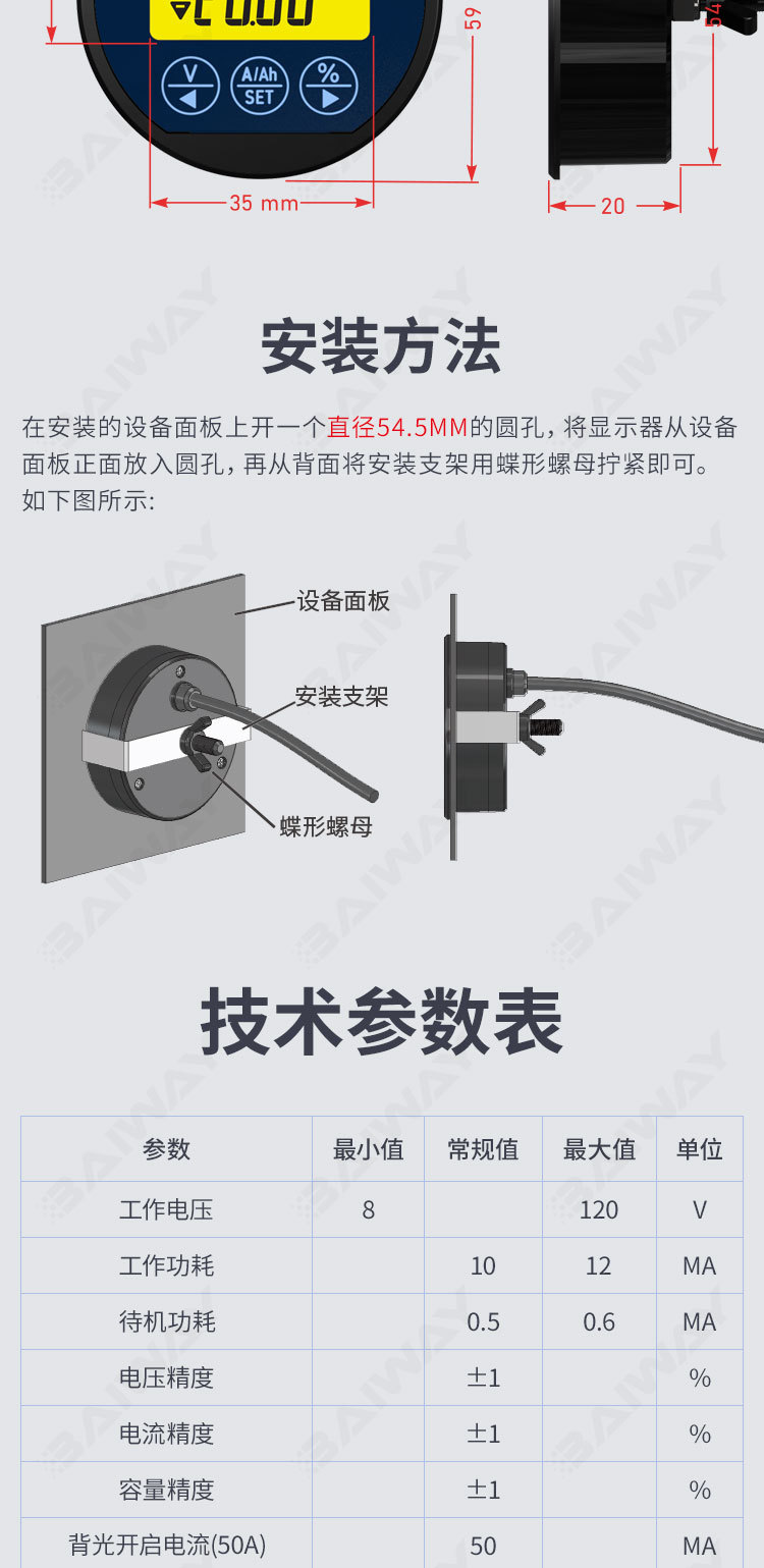 ##TR16H款 游艇房车电池电量显示表 电池电量监视器 换电改装电量 1台