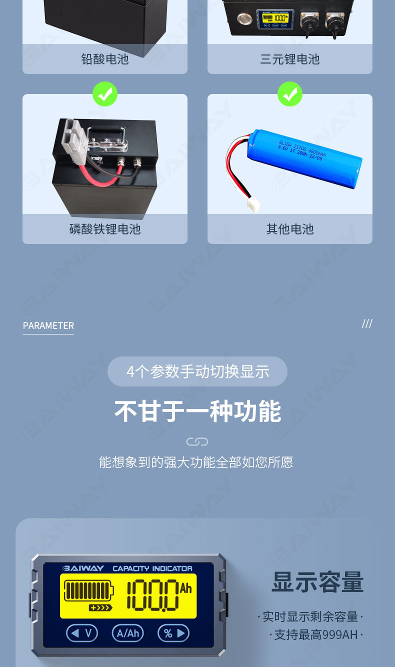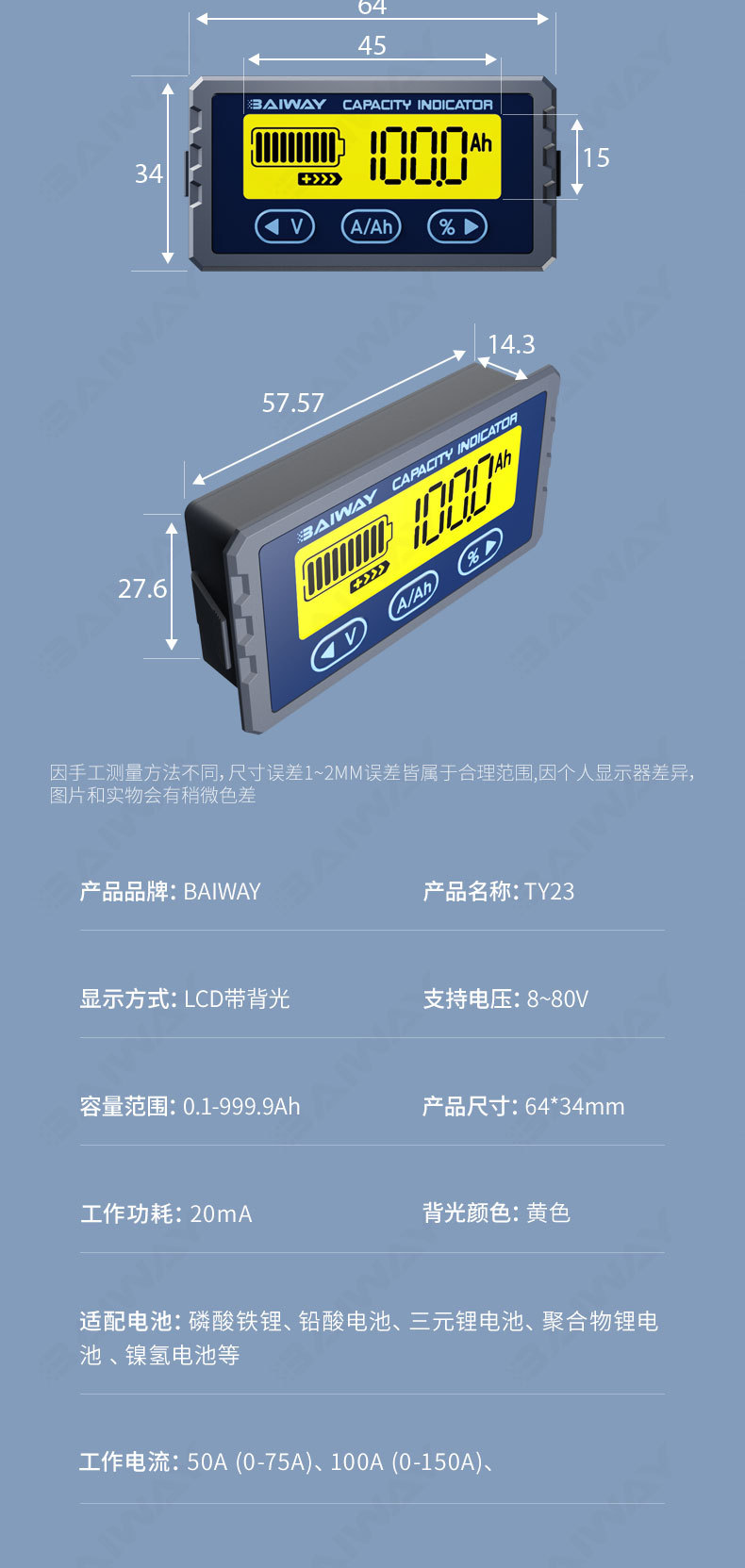 ##TY23库仑计 电池电量监视器 换电改装电量表 磷酸铁锂电量表