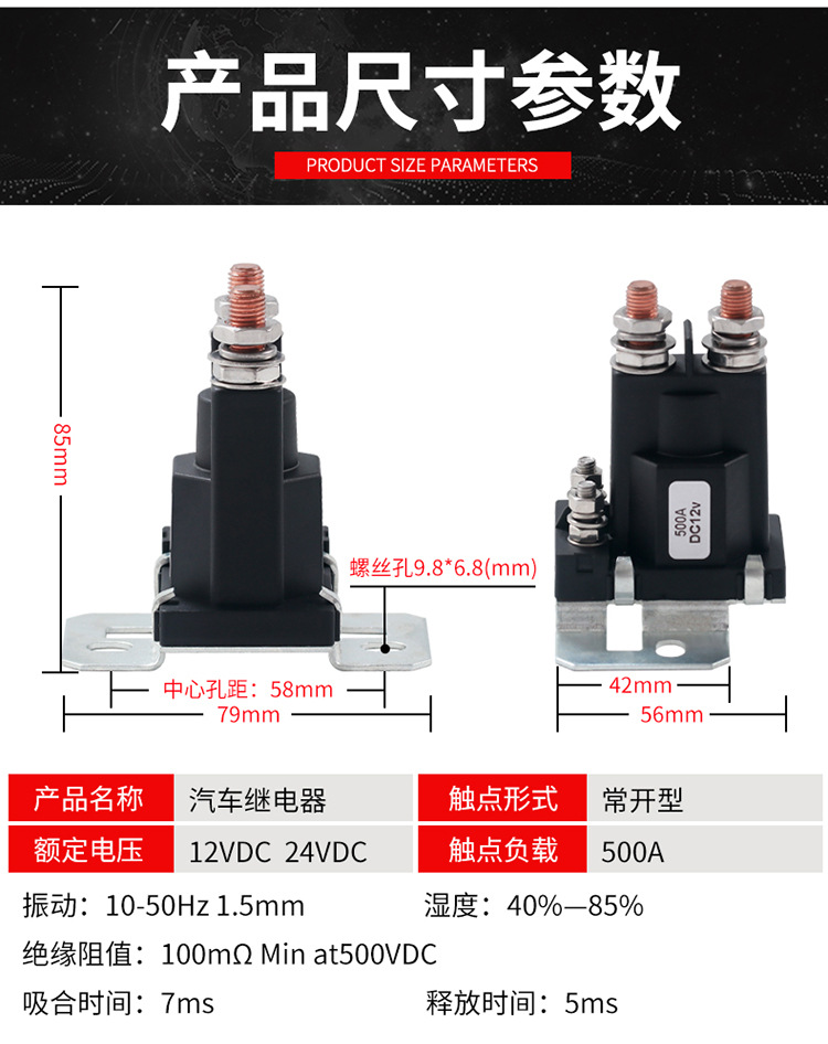 500A直流起动继电器预热继电器12V24V改装汽车电源总开关