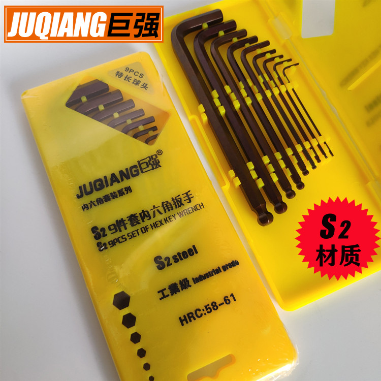 行家选批发内六方扳手巨强牌盒装内六角9件套家用工业s2球头扳手