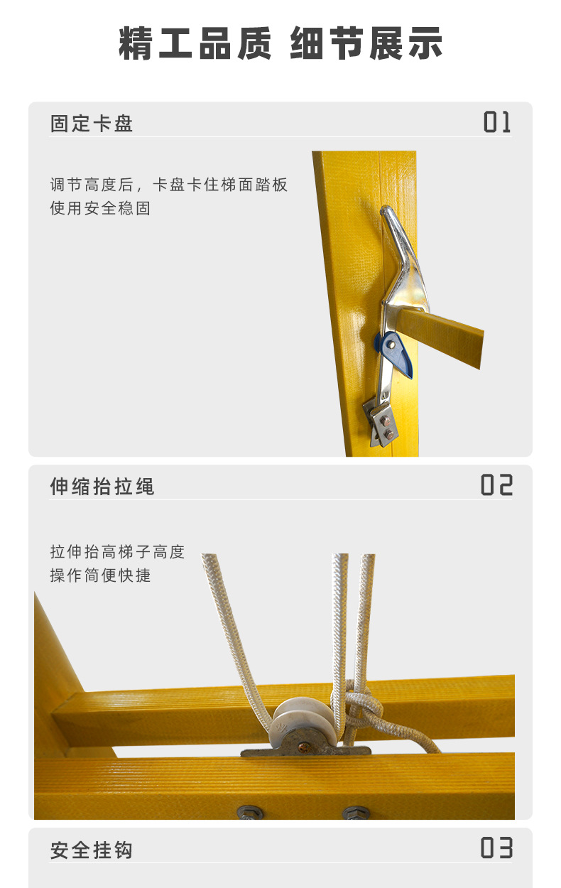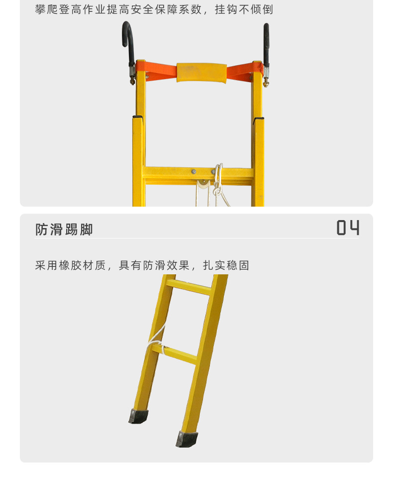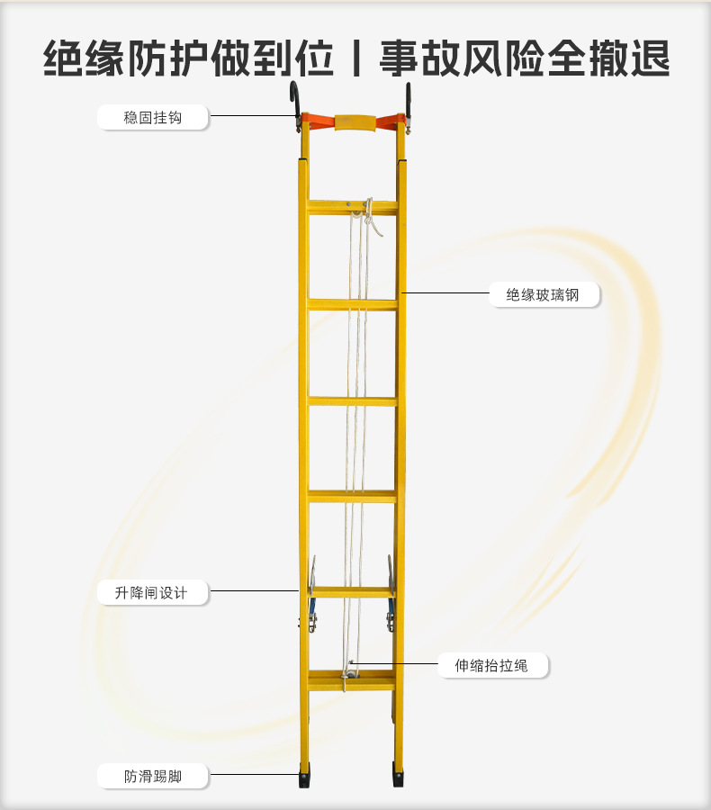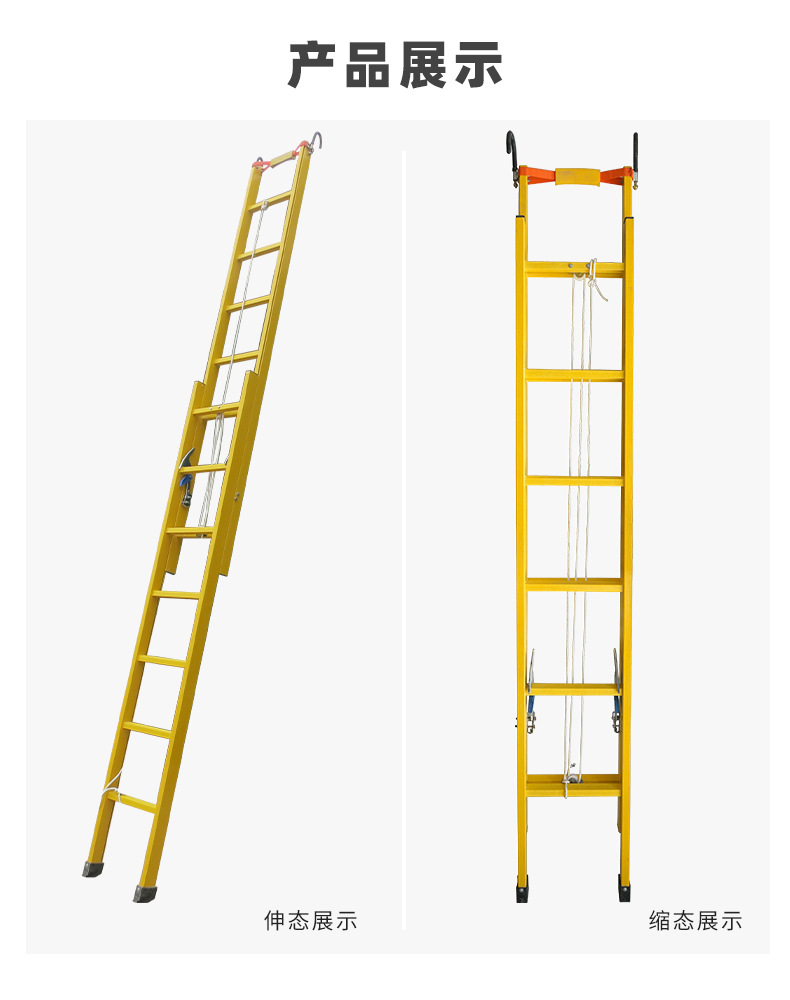 4米玻璃钢绝缘伸缩梯 玻璃钢绝缘梯 电工绝缘单升降梯 挂钩梯可制
