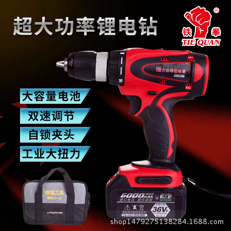 锂电充电钻 铁拳13MM大功率36V手持电动螺丝刀双速电钻 现货批发