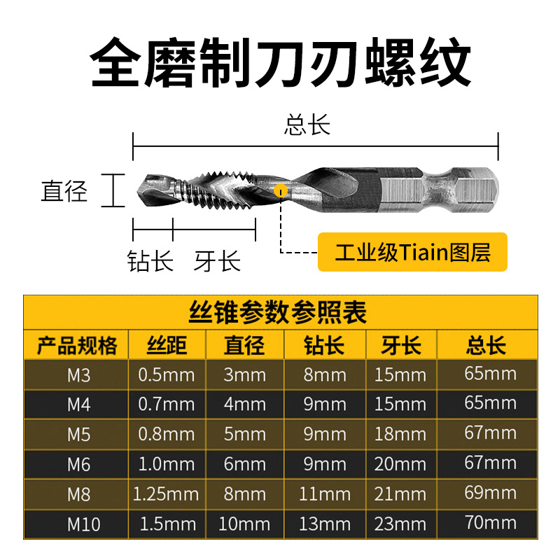 7件套铁盒装氮化钛铝涂层复合丝锥M35含钴不锈钢专用涂层丝锥组合