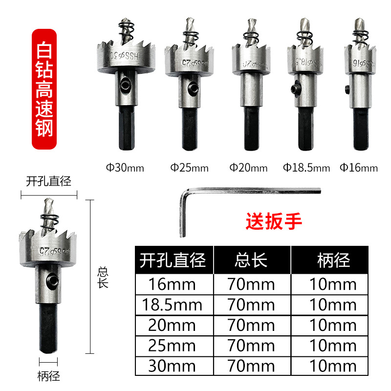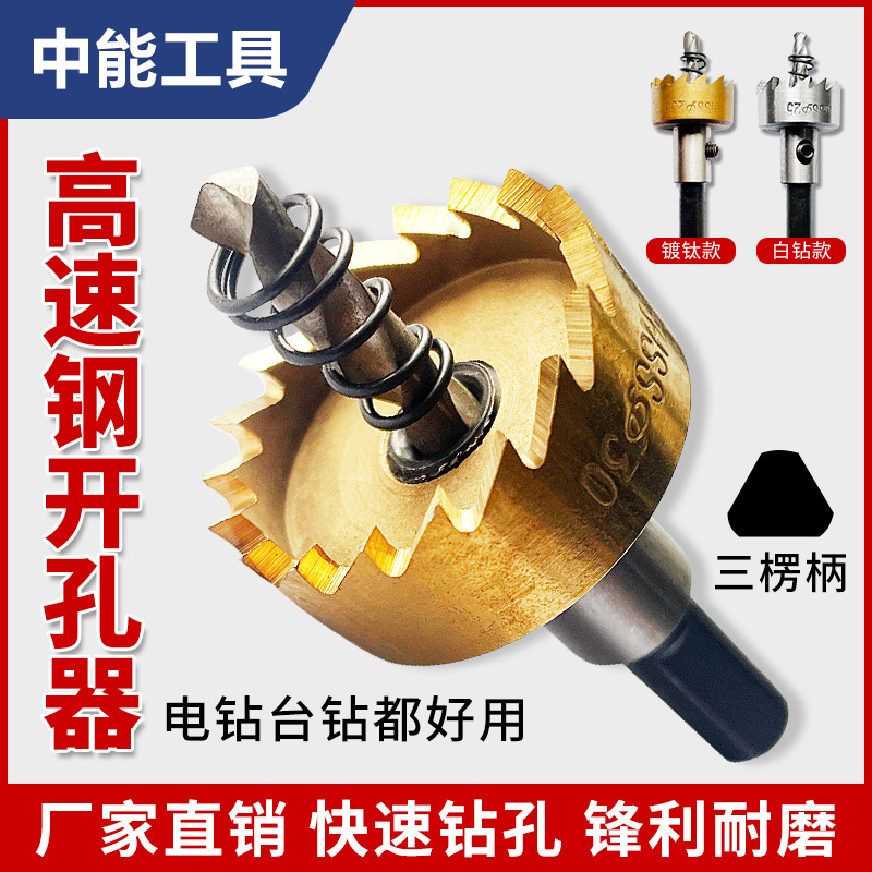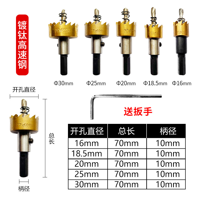 5件套高速钢镀钛锯齿开孔器金色铝板铁板打孔钻头16-30mm开孔器