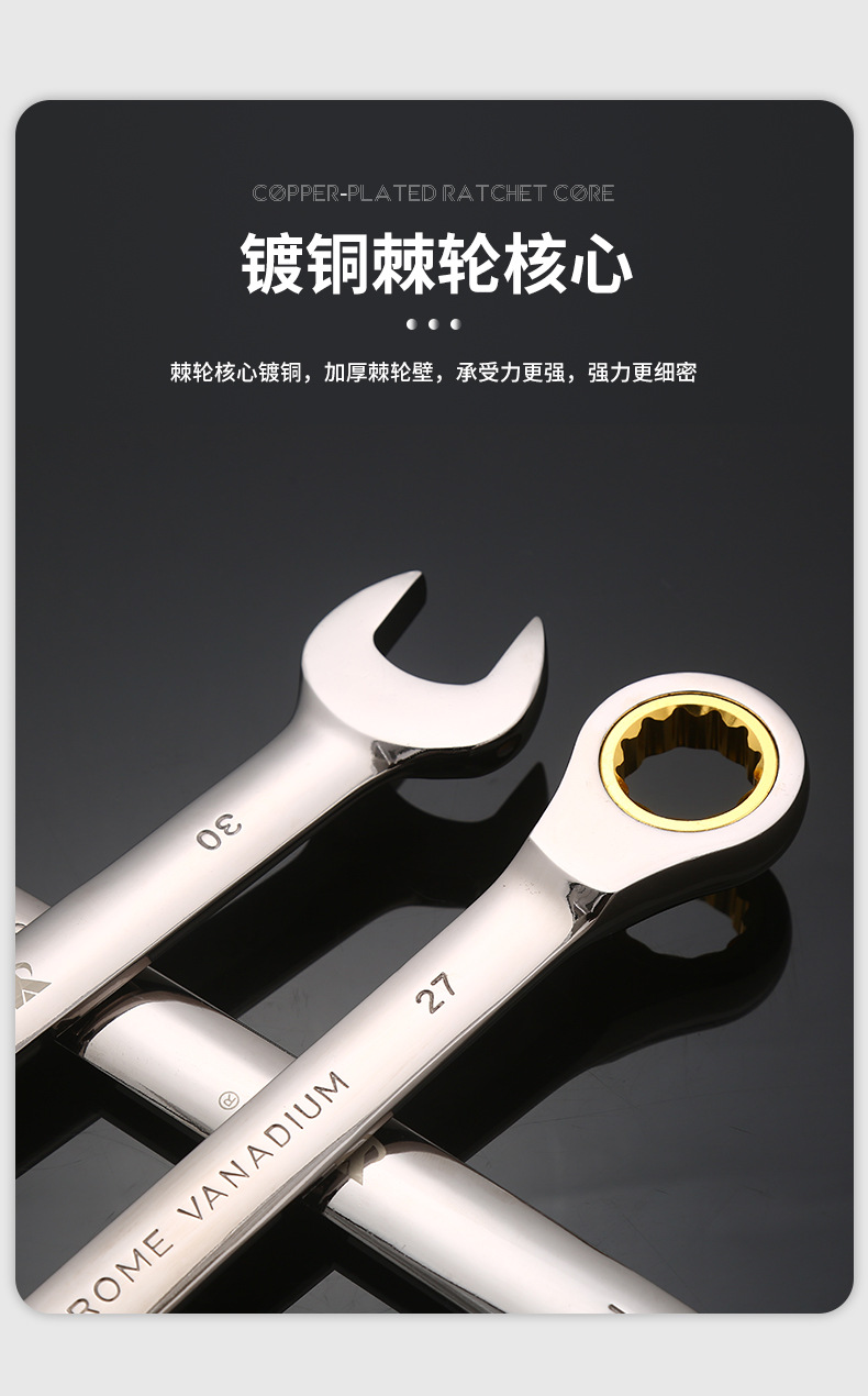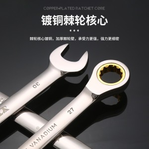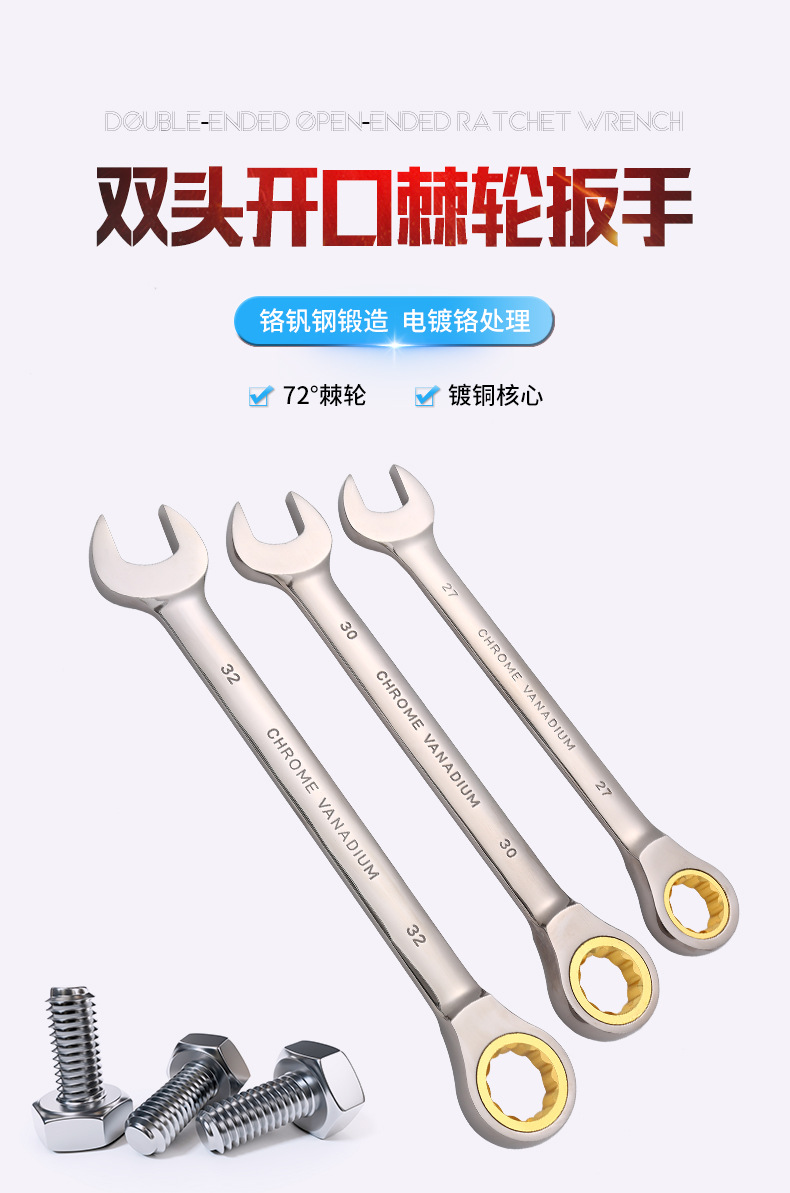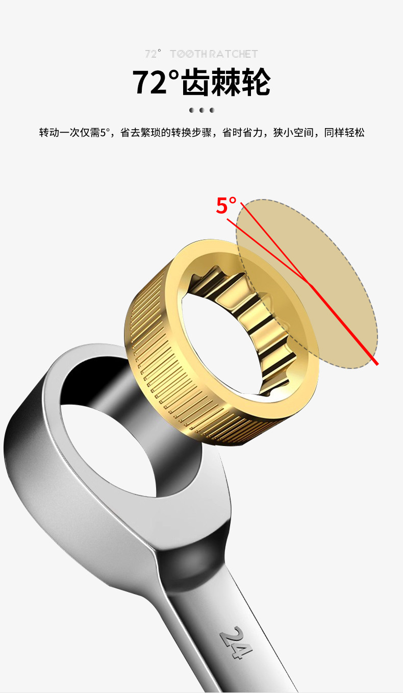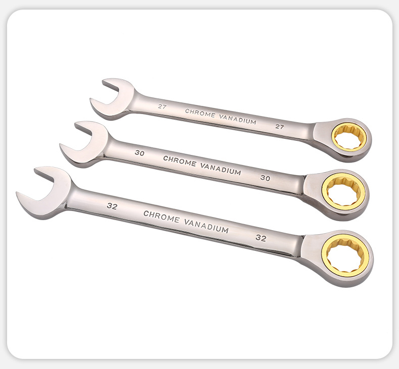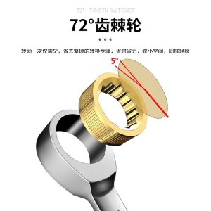 72齿双头开口棘轮扳手金色开口两用棘轮扳手多功能双向快速扳手