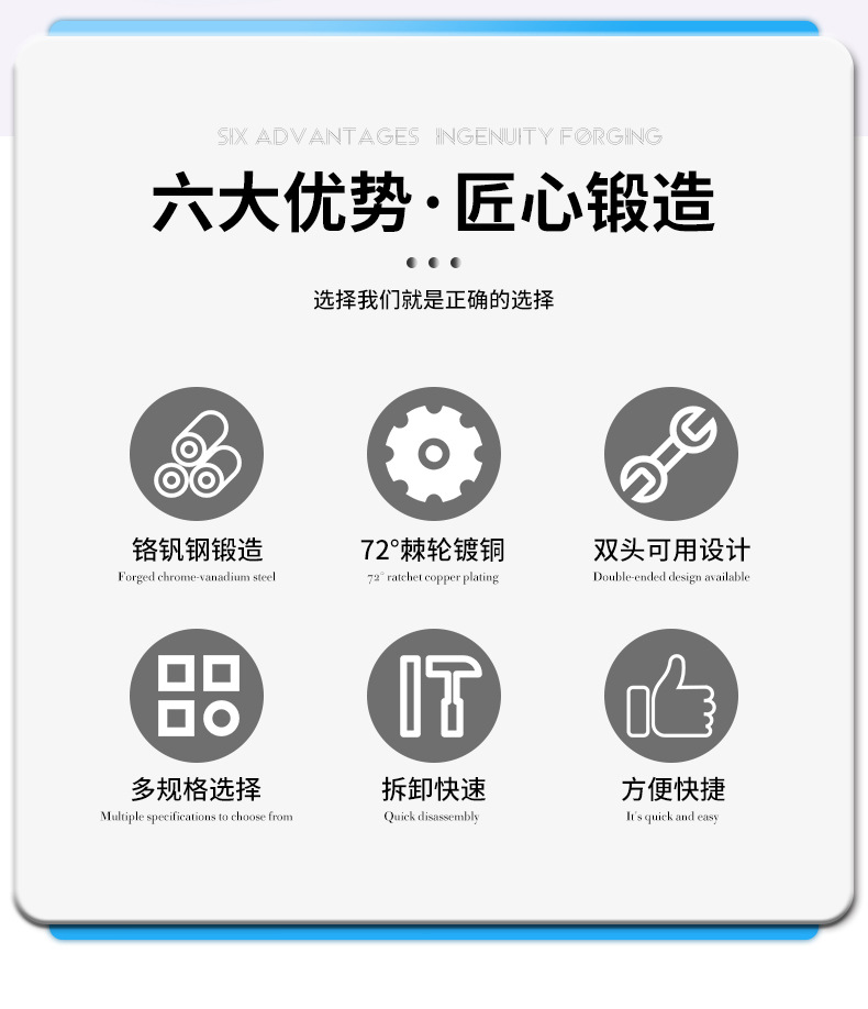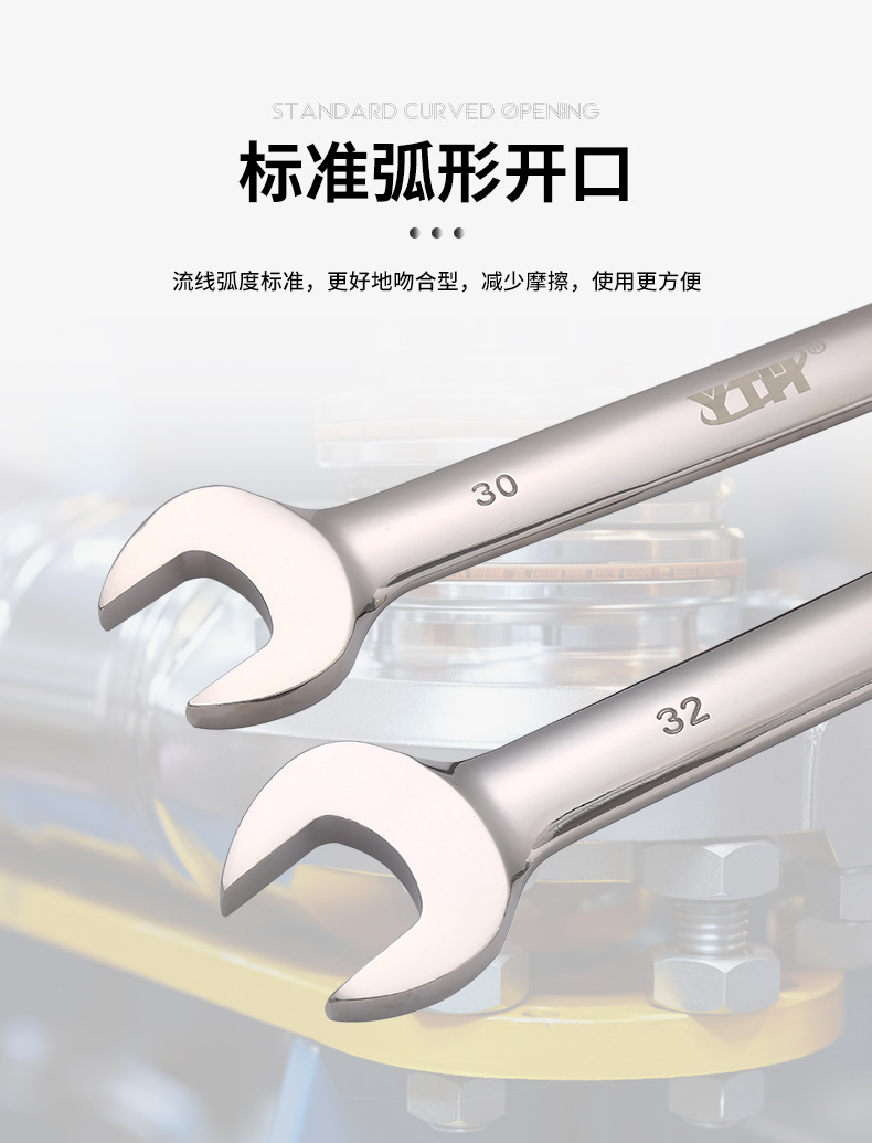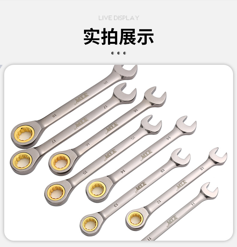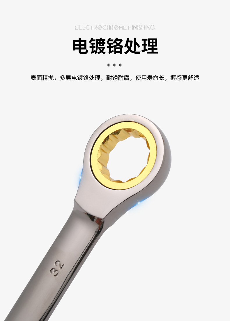 72齿双头开口棘轮扳手金色开口两用棘轮扳手多功能双向快速扳手