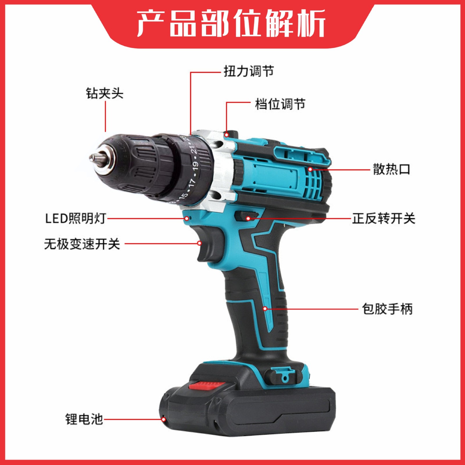 锂电钻多功能充电钻手枪钻双速家用电动螺丝刀