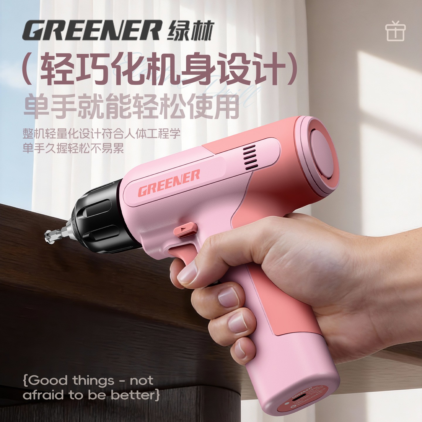 绿林电钻小粉钻手电钻女生粉小型家用手枪钻锂电充电多功能 拧螺丝