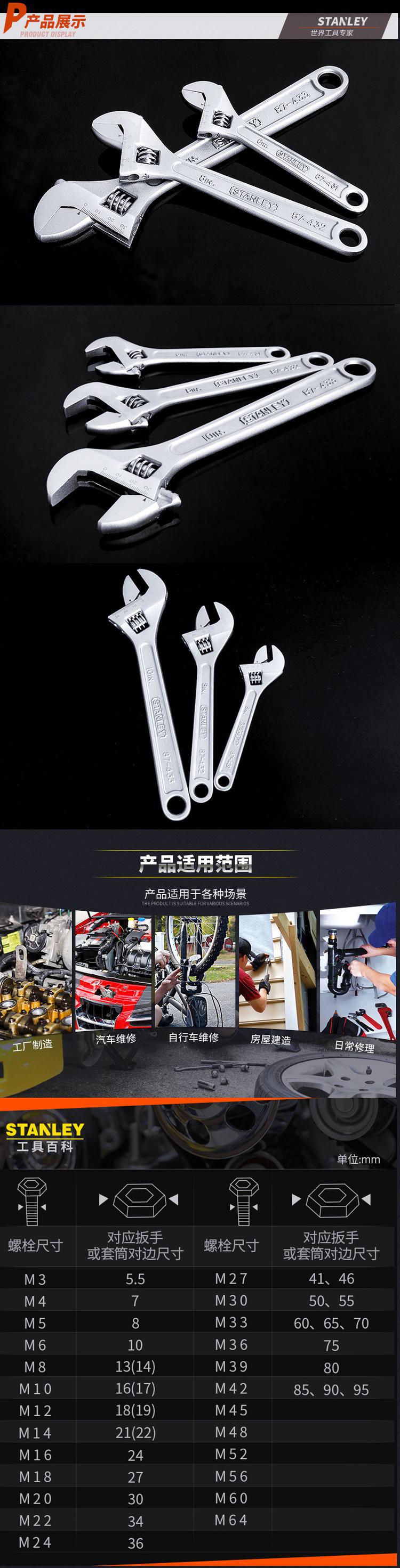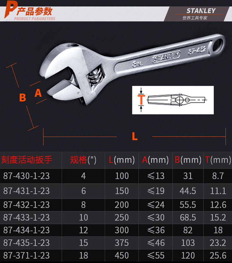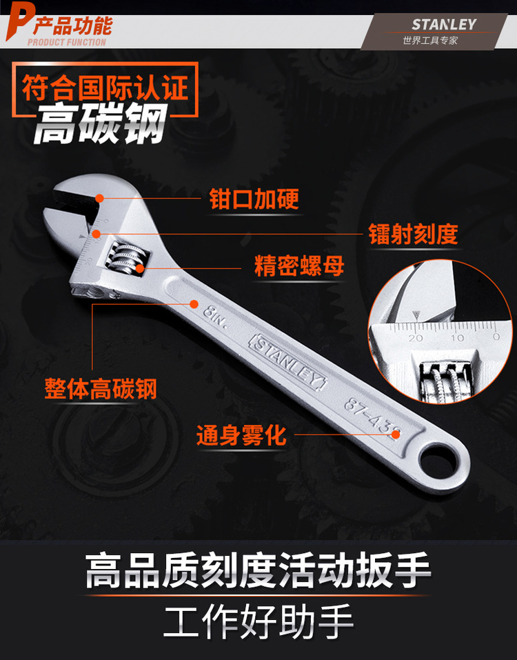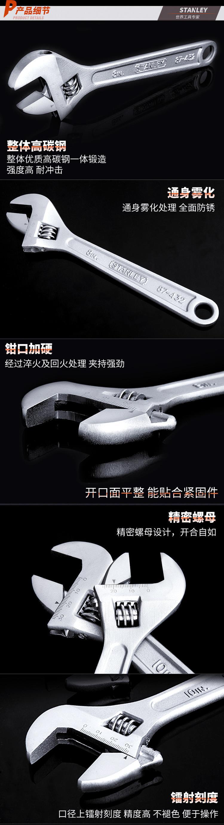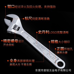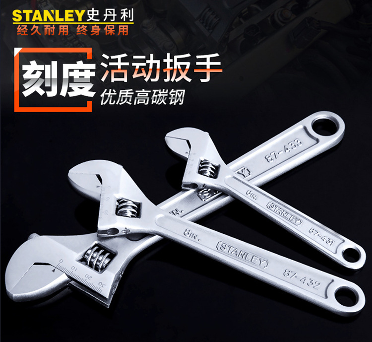 史丹利家用活动扳手万能扳手4/6/8/10/12/15/18寸带刻度活络扳手