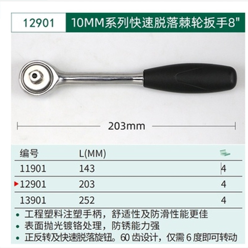 SATA/世达快速脱落棘轮扳手13901 13902 12901 12902 11901 11902