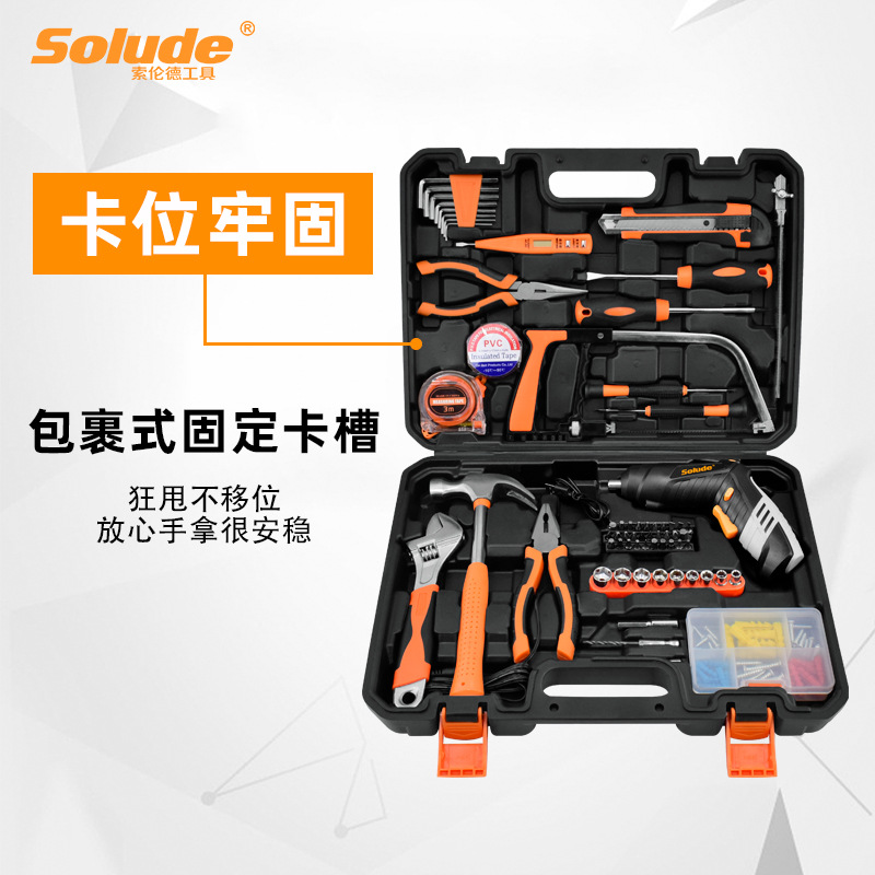 索伦德家用五金电工维修充电电动螺丝刀工具套装手动工具箱