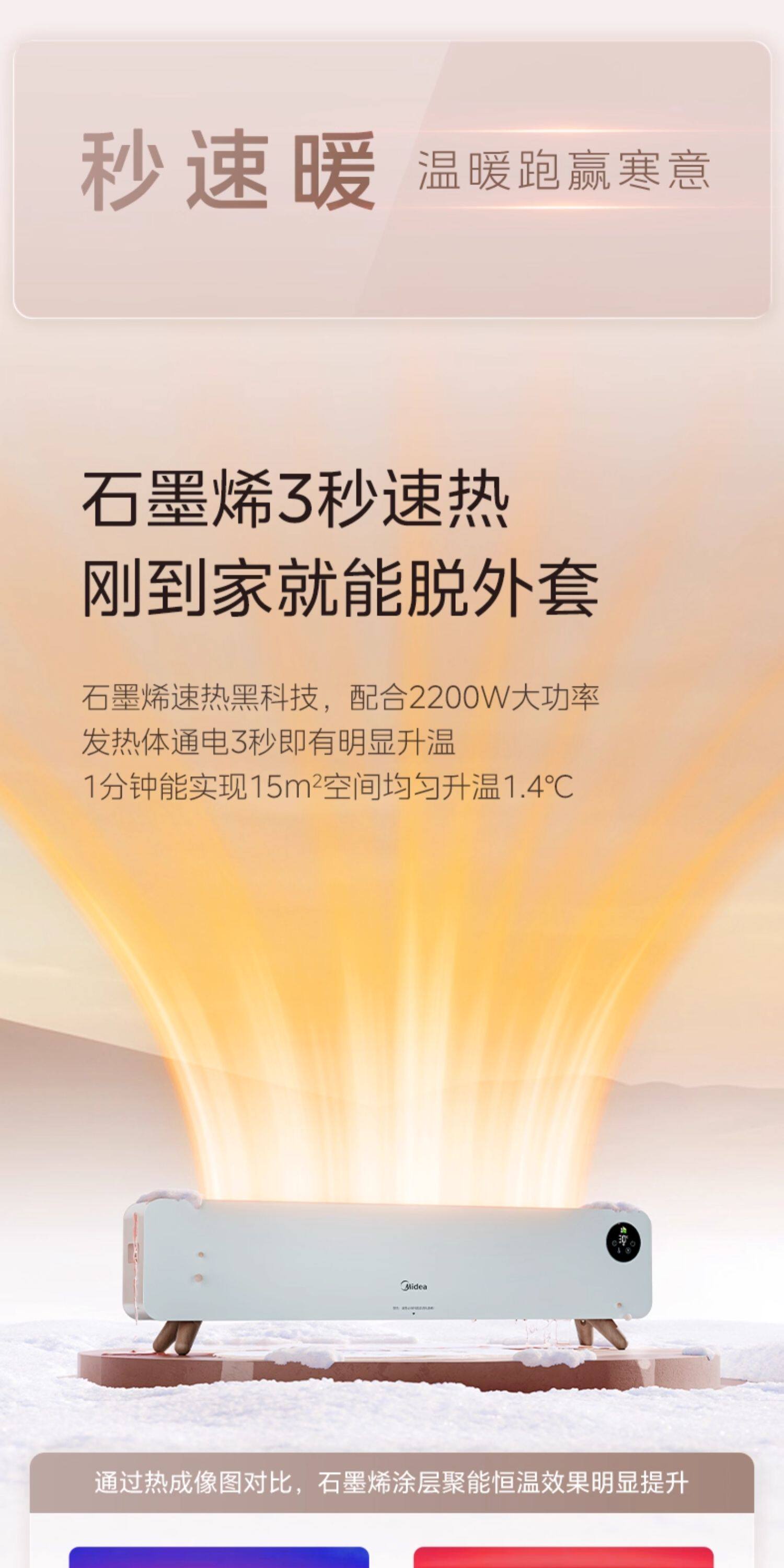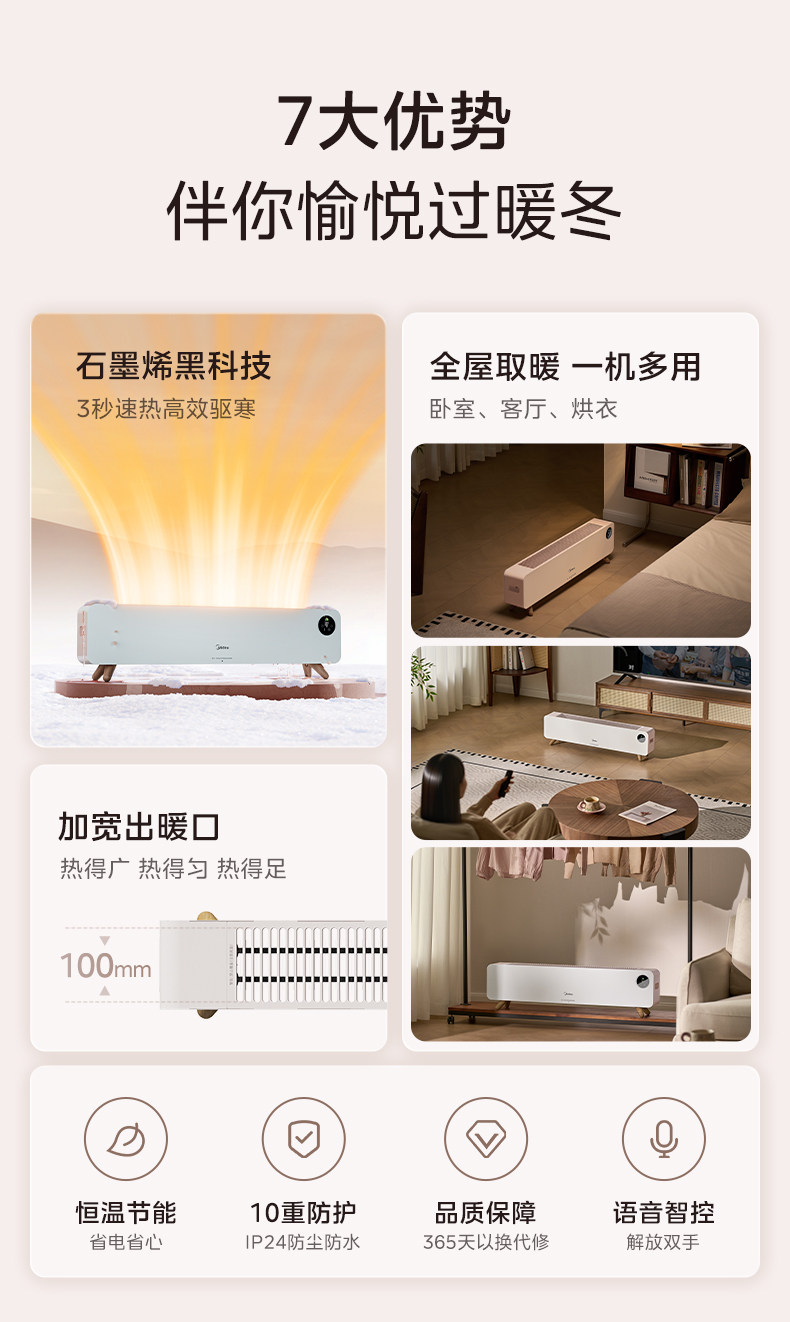 美的踢脚线取暖器家用石墨烯电暖气语音冬季大面积2025新款暖风机