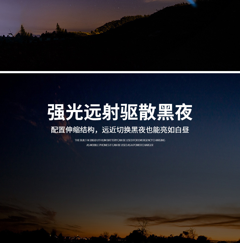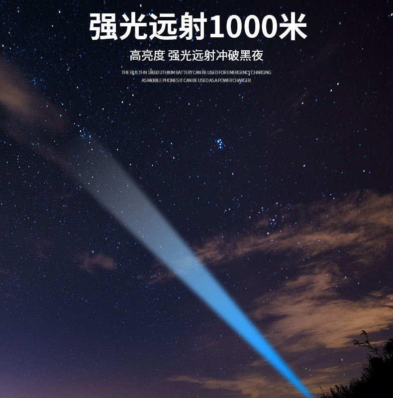 新款JW7632 USB充电户外LED手电应急探照灯强光手电筒厂家供应
