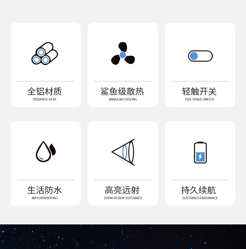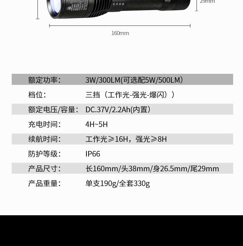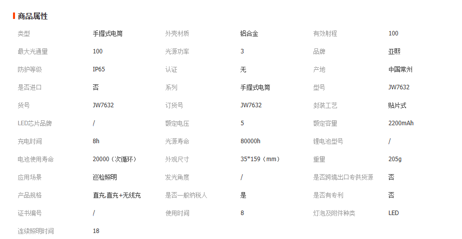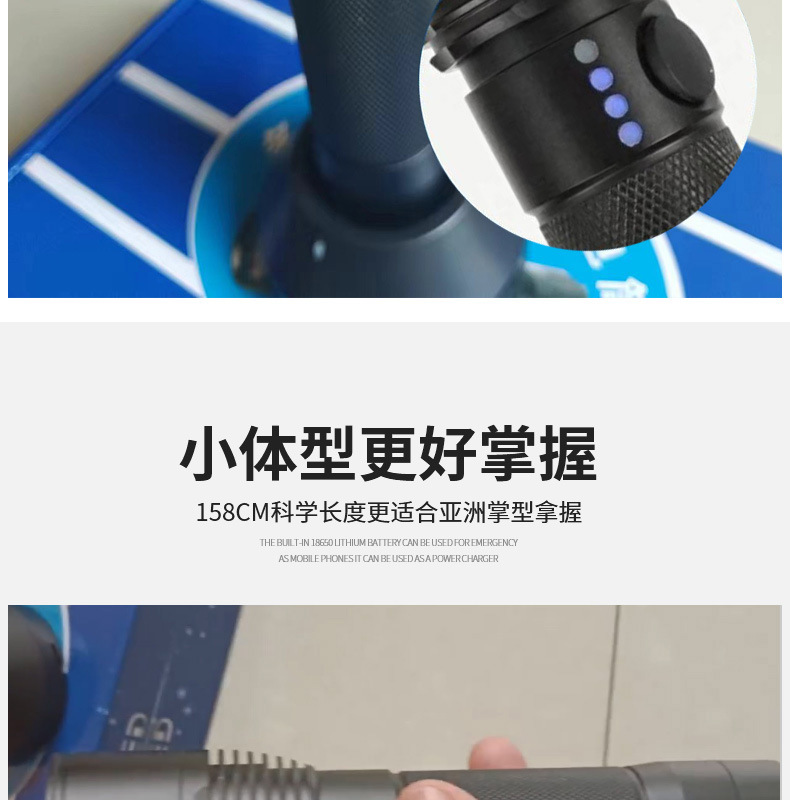 新款JW7632 USB充电户外LED手电应急探照灯强光手电筒厂家供应 1支