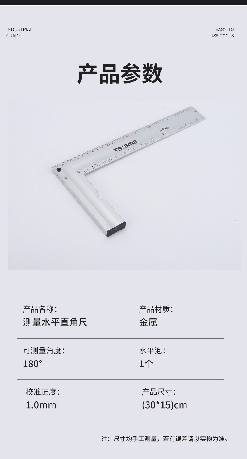 水平尺水泡直角尺铝合金拐尺木工尺英寸尺厘米尺20/30/50cm测量尺