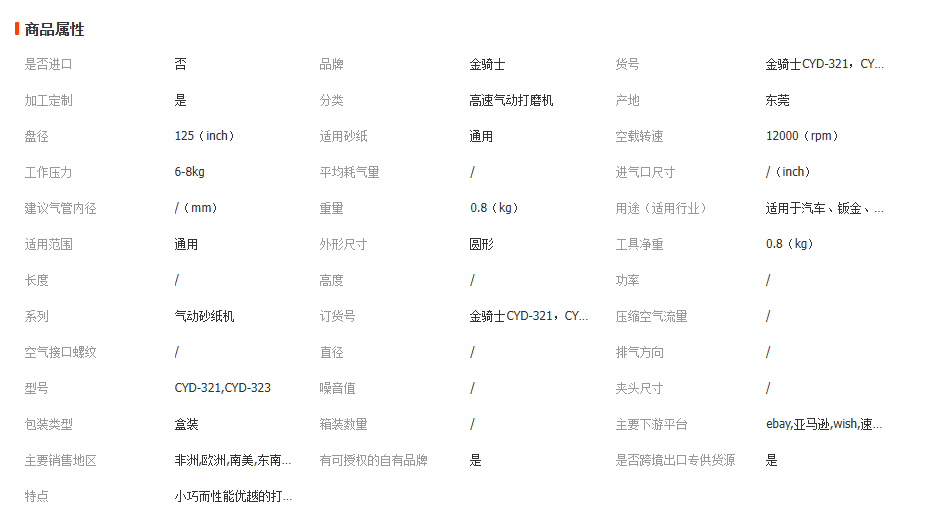 金骑士CYD-321气磨机气动打磨机砂纸机平面墙打蜡机小型抛光机5寸