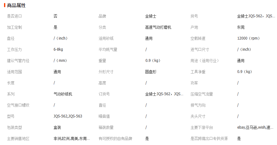 金骑士JQS-562偏心轴气动打磨机563砂纸机圆形5寸抛光机工业级