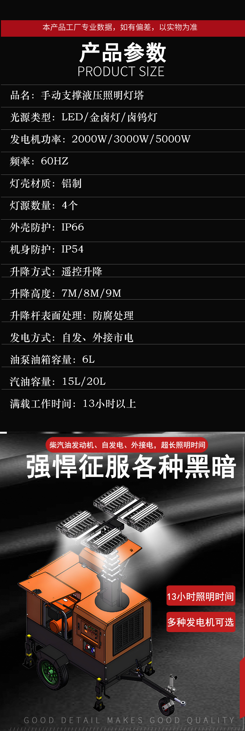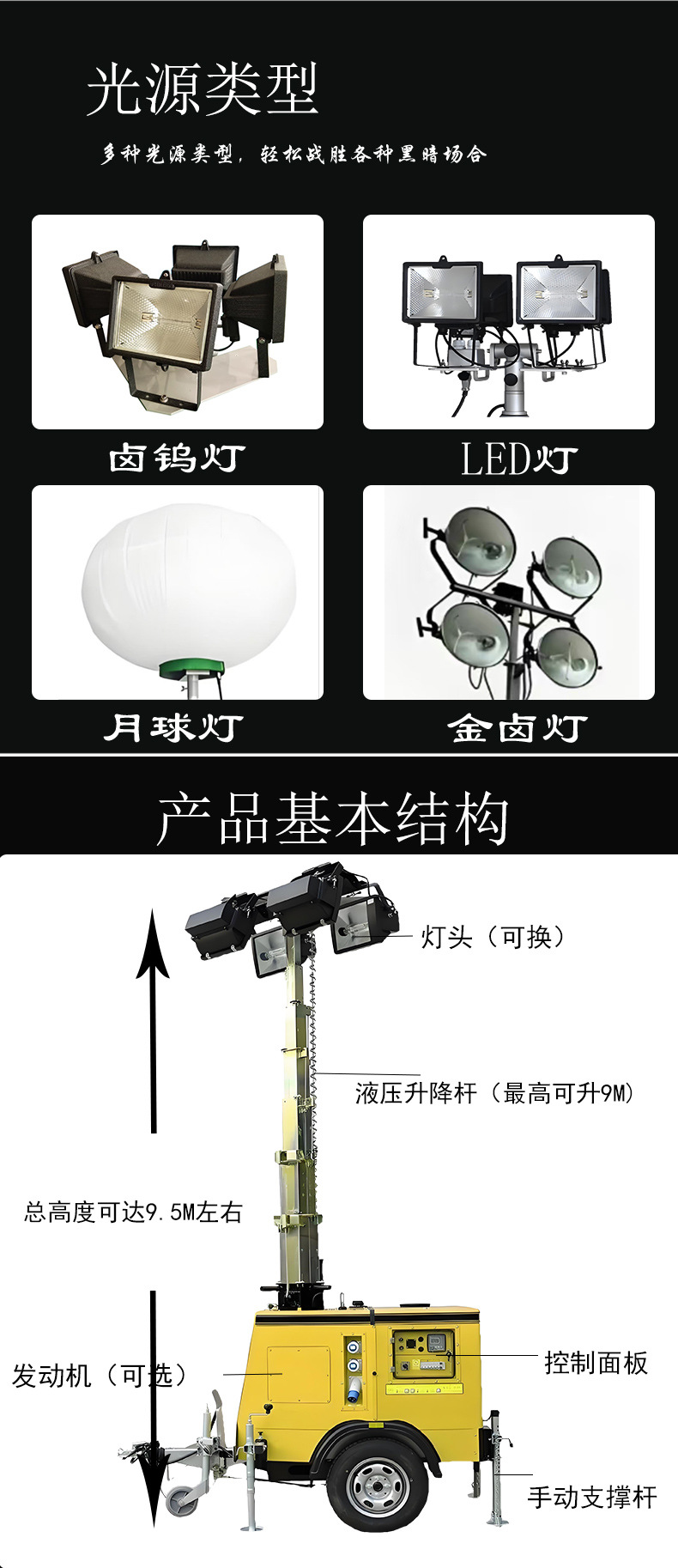 工程夜间施工全方位升降移动照明车防汛救灾户外应急救援照明灯塔