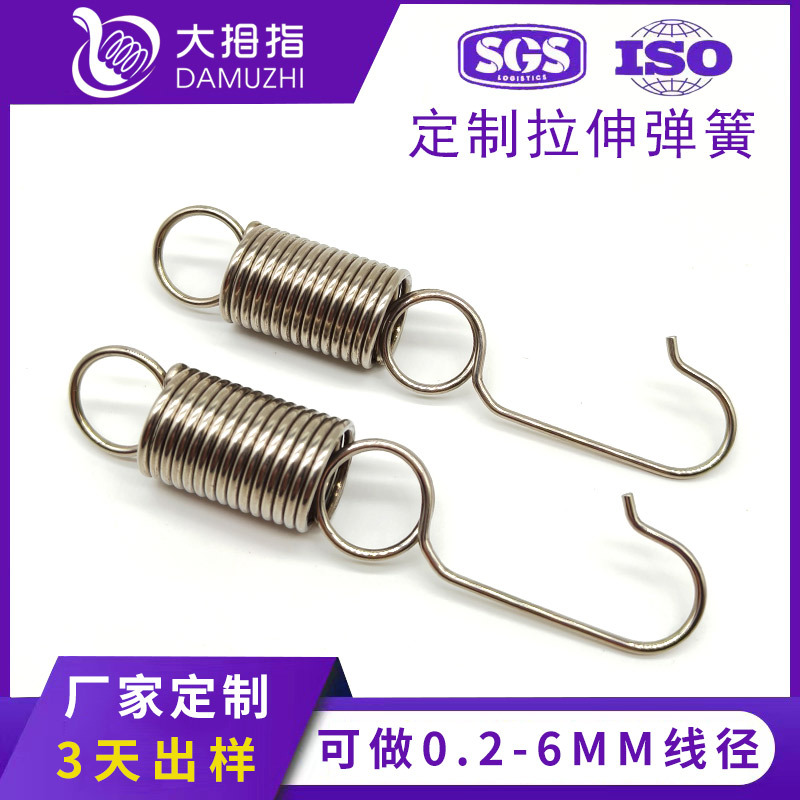 广东弹簧 304不锈钢圆钩长拉簧树牌固定拉伸弹簧带钩拉力簧加工
