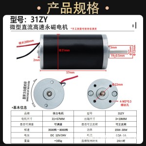 31ZY直流永磁高速电机微小型大功率调速马达可正反转电动机12v24v