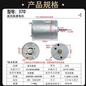 微型直流电动机RS370大功率高速马达6V12V24V强磁暴