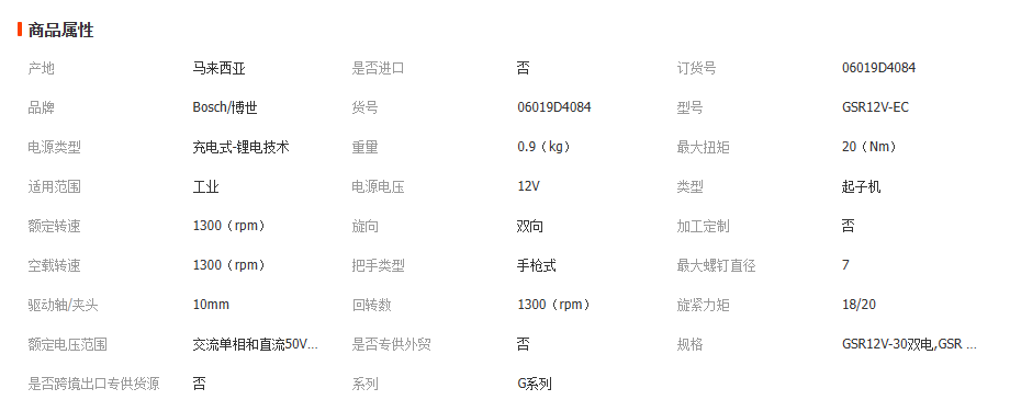博世GSR12V-30/12V-35/12V-35 HX/12V-15 FC 无刷手电钻起子机
